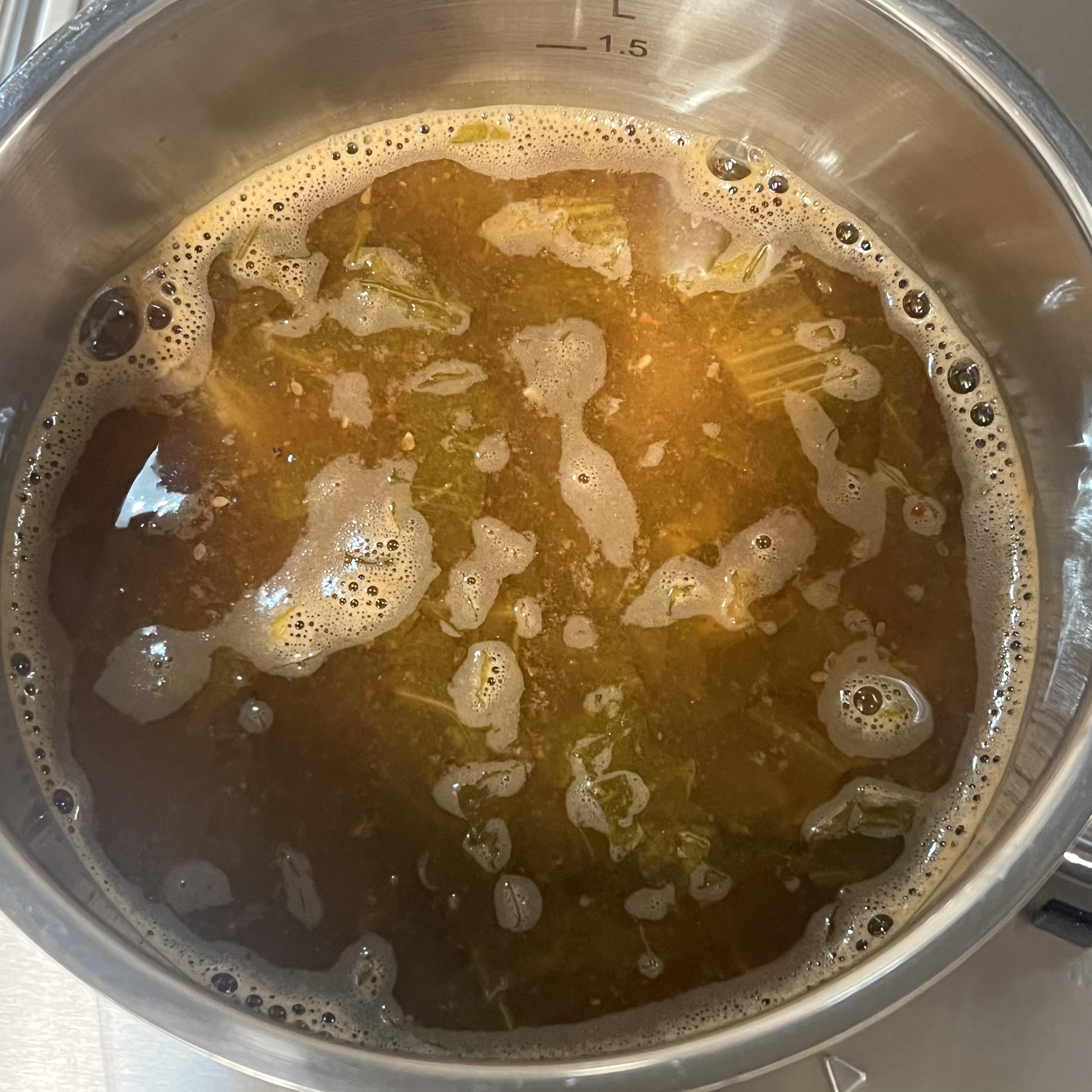 5. 다진마늘, 참치액, 고춧가루를 각 1/2T씩 넣고 끓여줍니다.