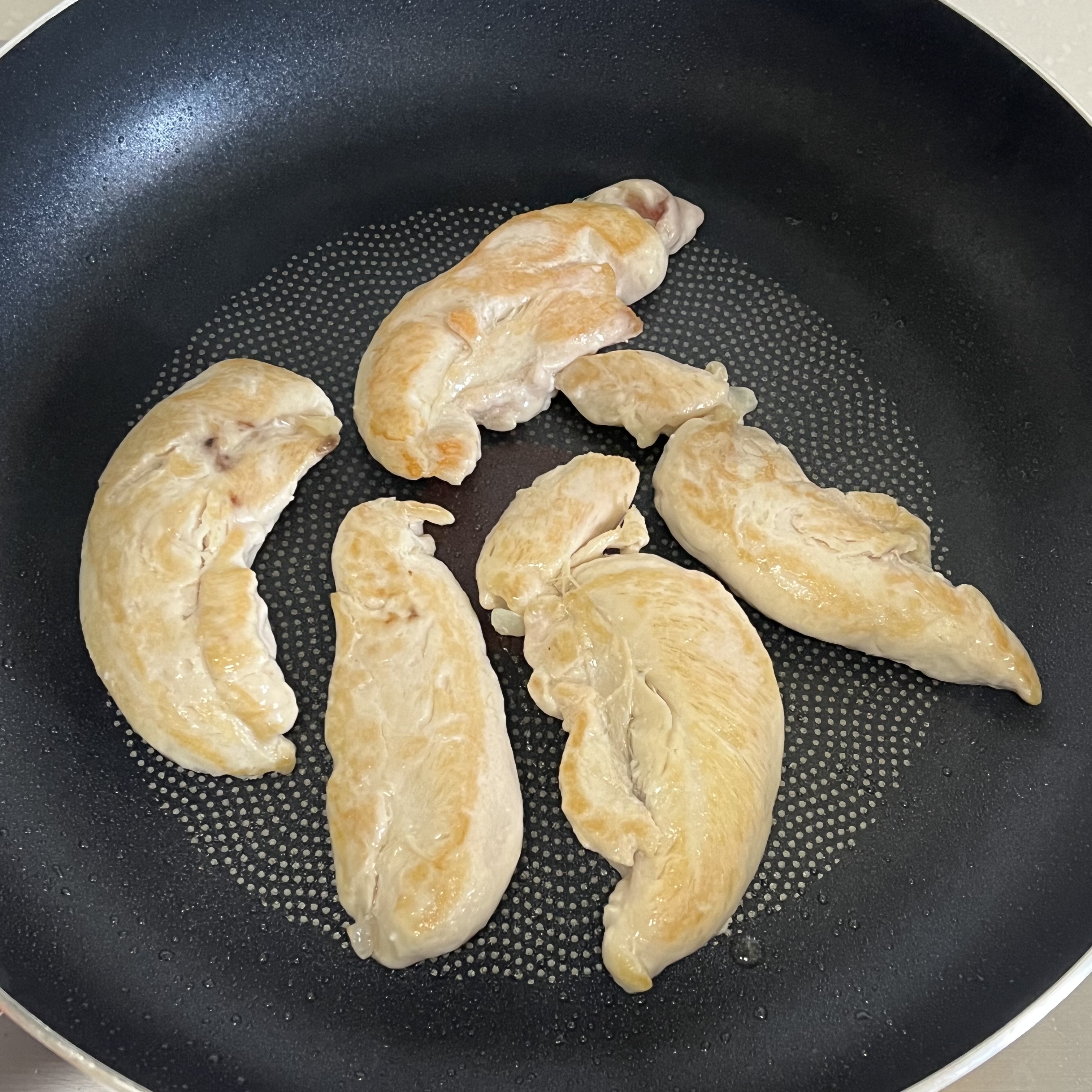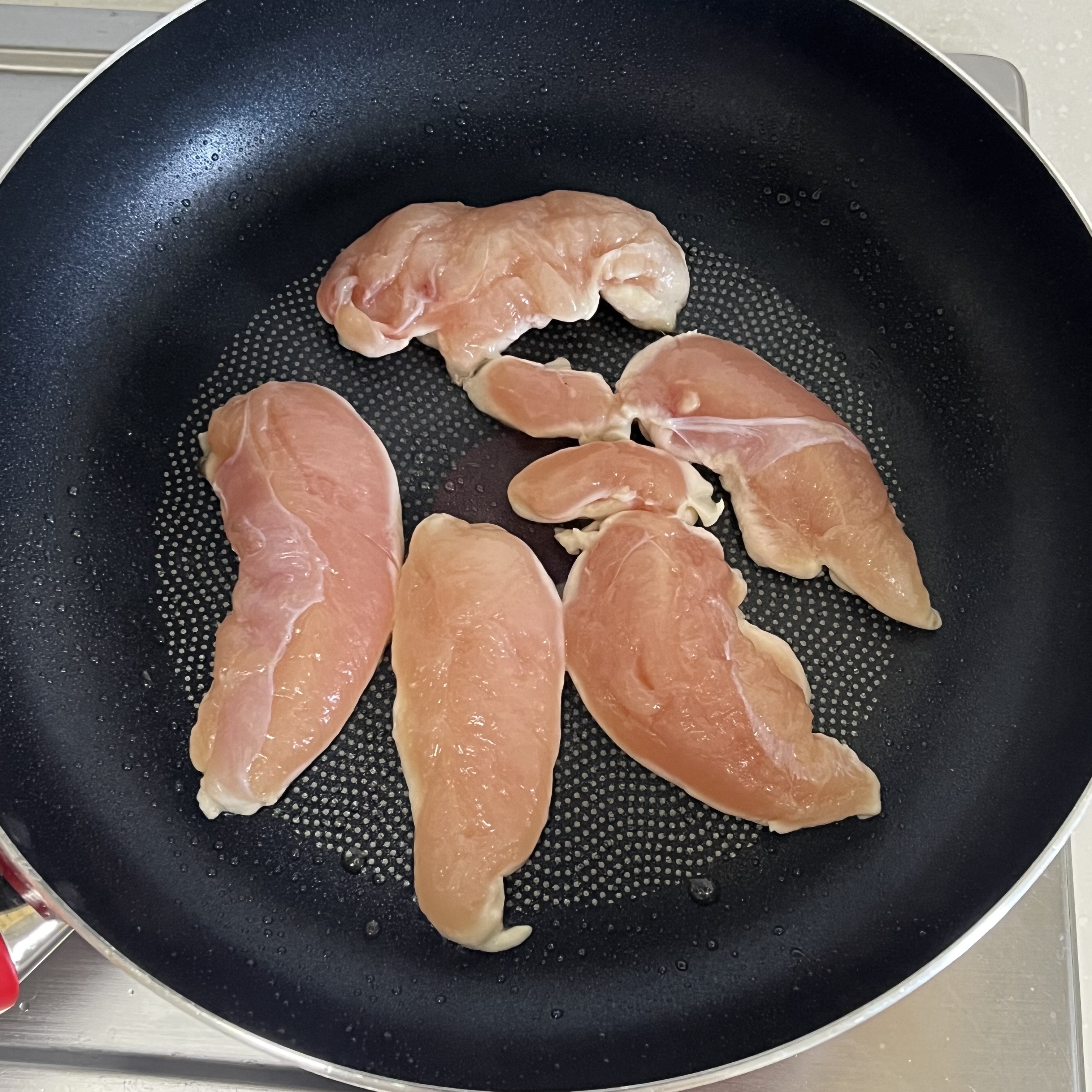 2. 팬에 닭안심을 넣고 구워줍니다.