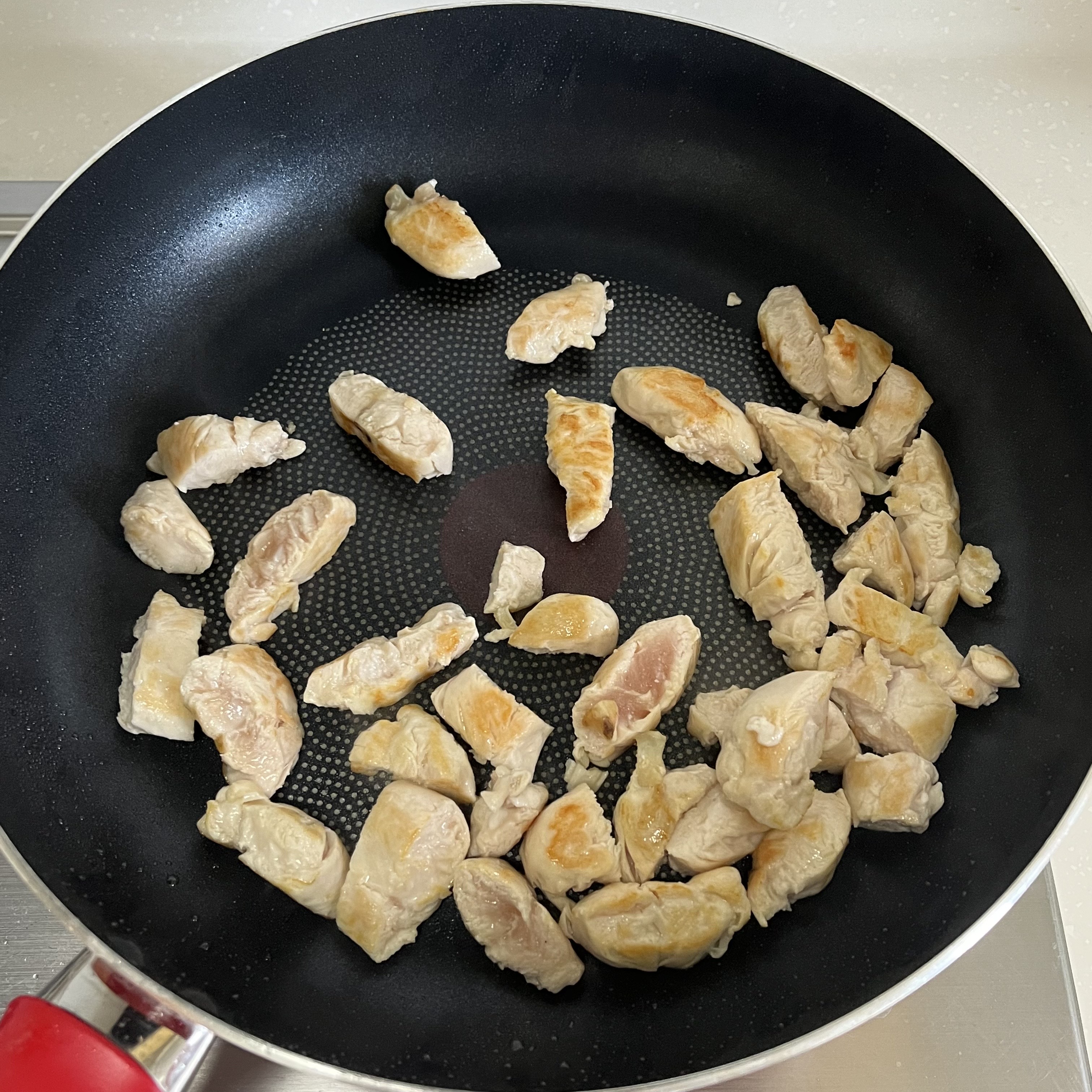 2. 팬에 닭안심을 넣고 구워줍니다.