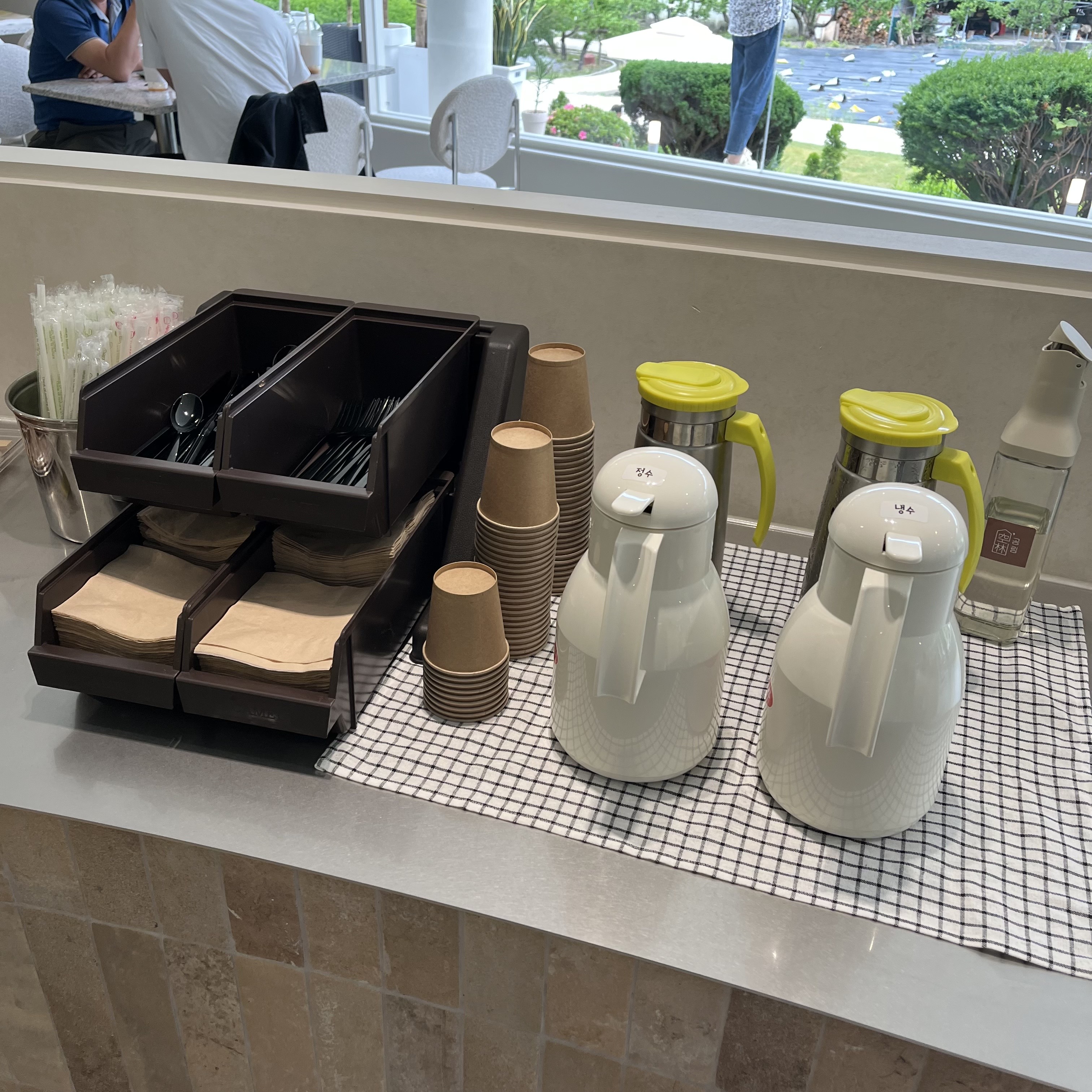 날씨가 딱 좋아 야외 테이블에 앉아있었는데 카페 앞 쪽으로 산이 둘러싸여있고, 앞쪽에는 탁 트이게 밭이 위치해있어 눈이 너무 편안하고 정말 휴식하러 온것 같은 기분이 들었습니다