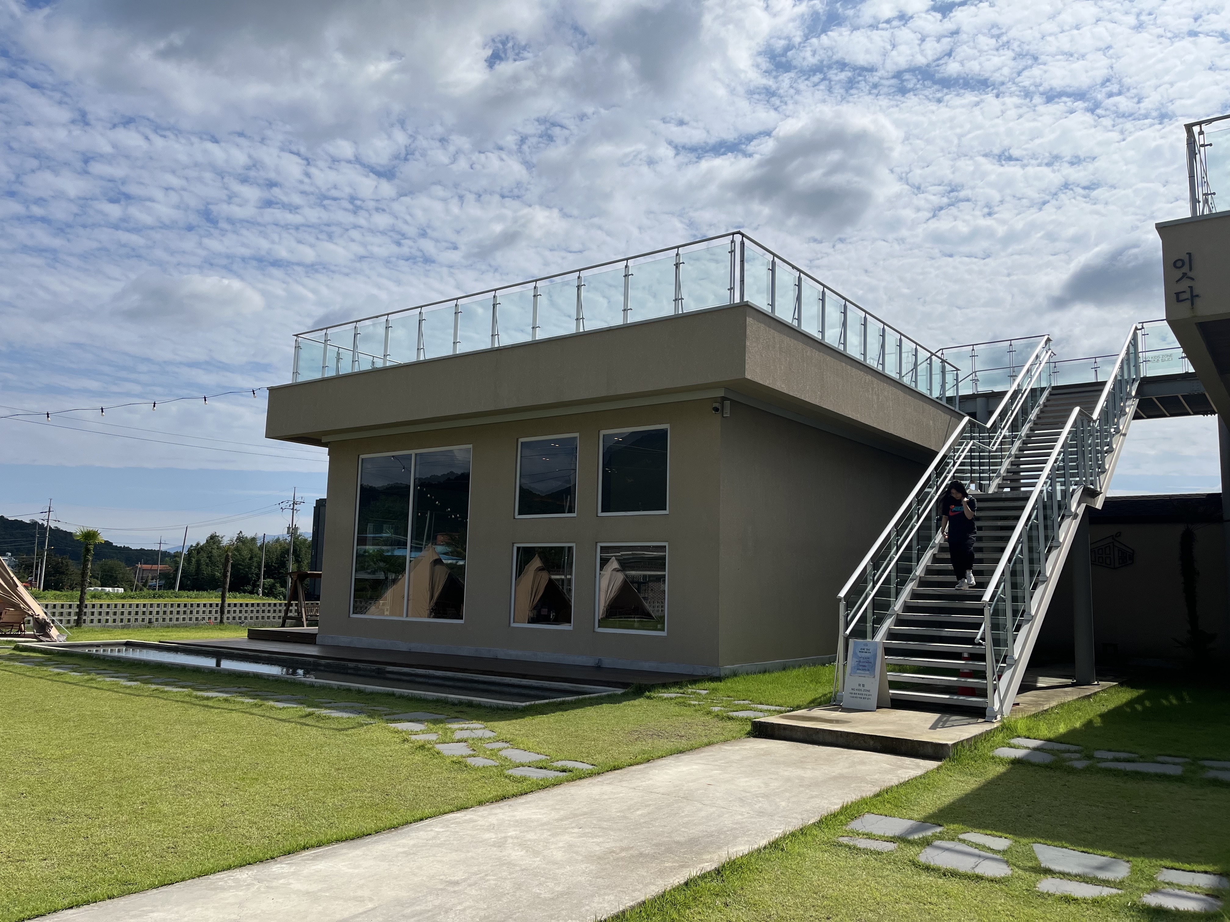 건물과 건물 사이에 있는 외부 계단을 통해서 2층 루프탑으로 올라갈 수 있는데