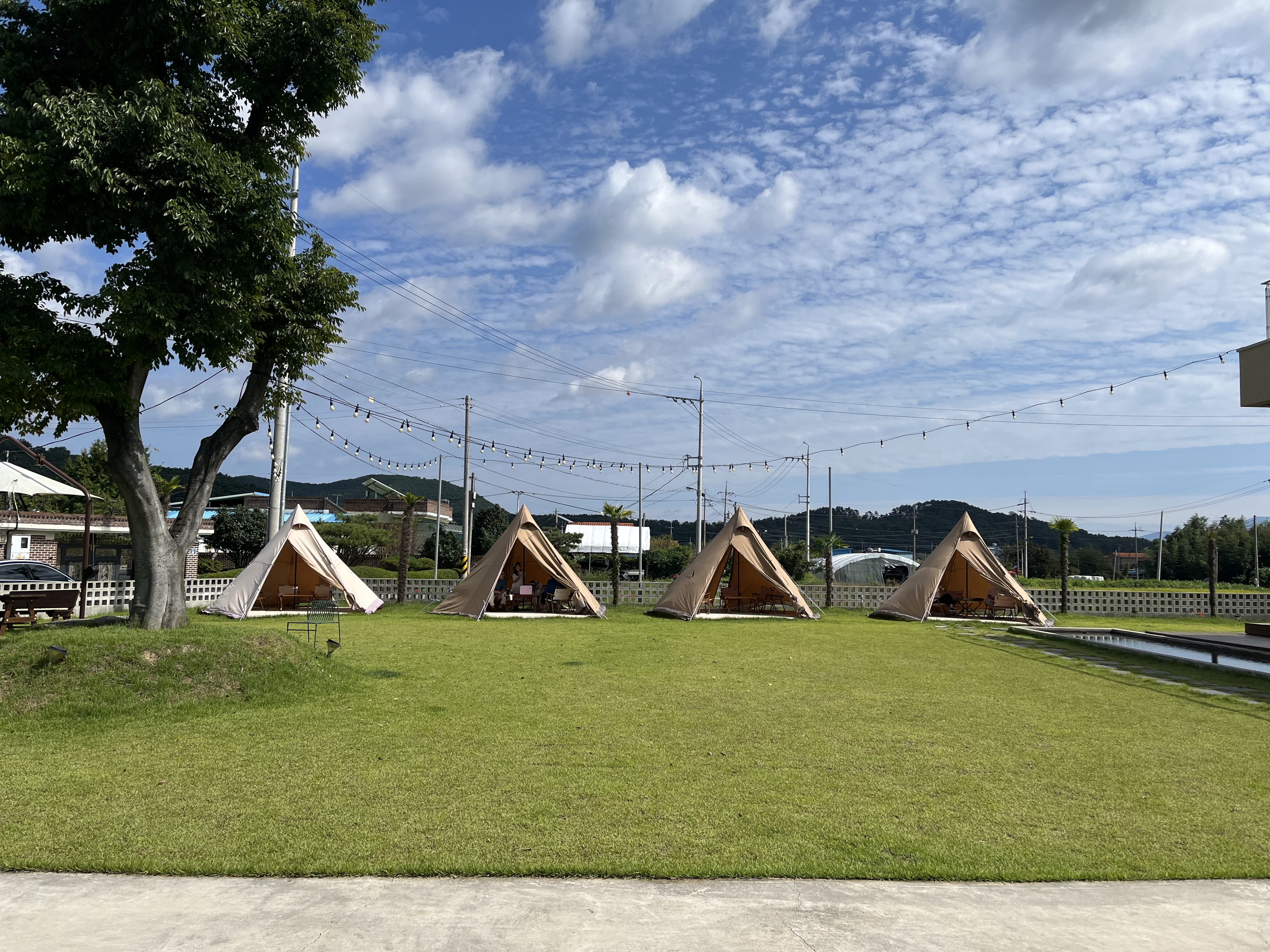 건물 옆과 뒤 쪽으로 잔디밭이 펼쳐져있고 텐트존이 있는데 날이 좋아서 그런지 야외에 사람들이 가장 많더라구요