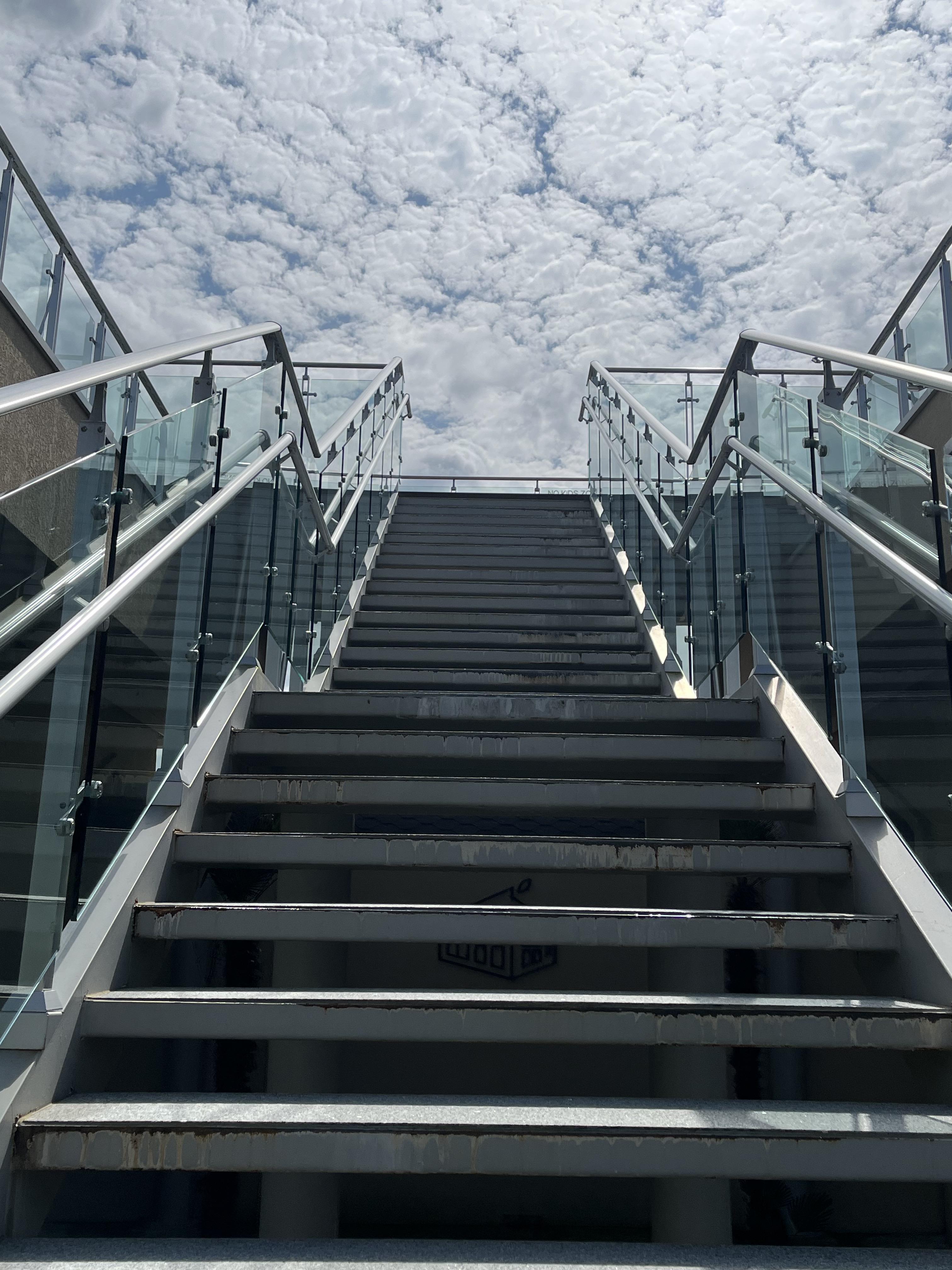 계단 난간이 유리로 되어있고, 계단과 계단 사이도 뚫려있어 위험해보이긴했습니다