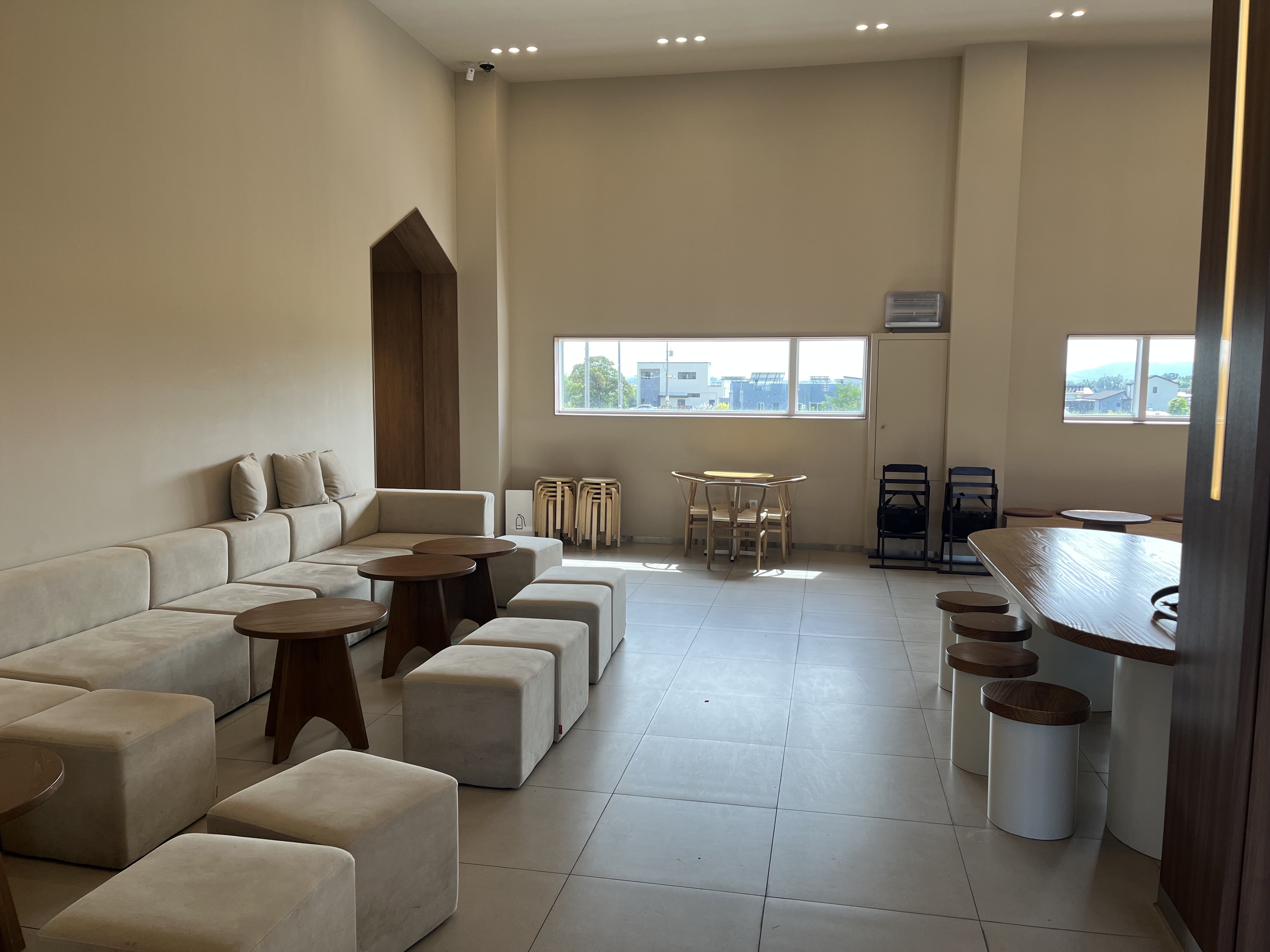 카페는 건물 두 동이 중간통로로 연결된 형태입니다