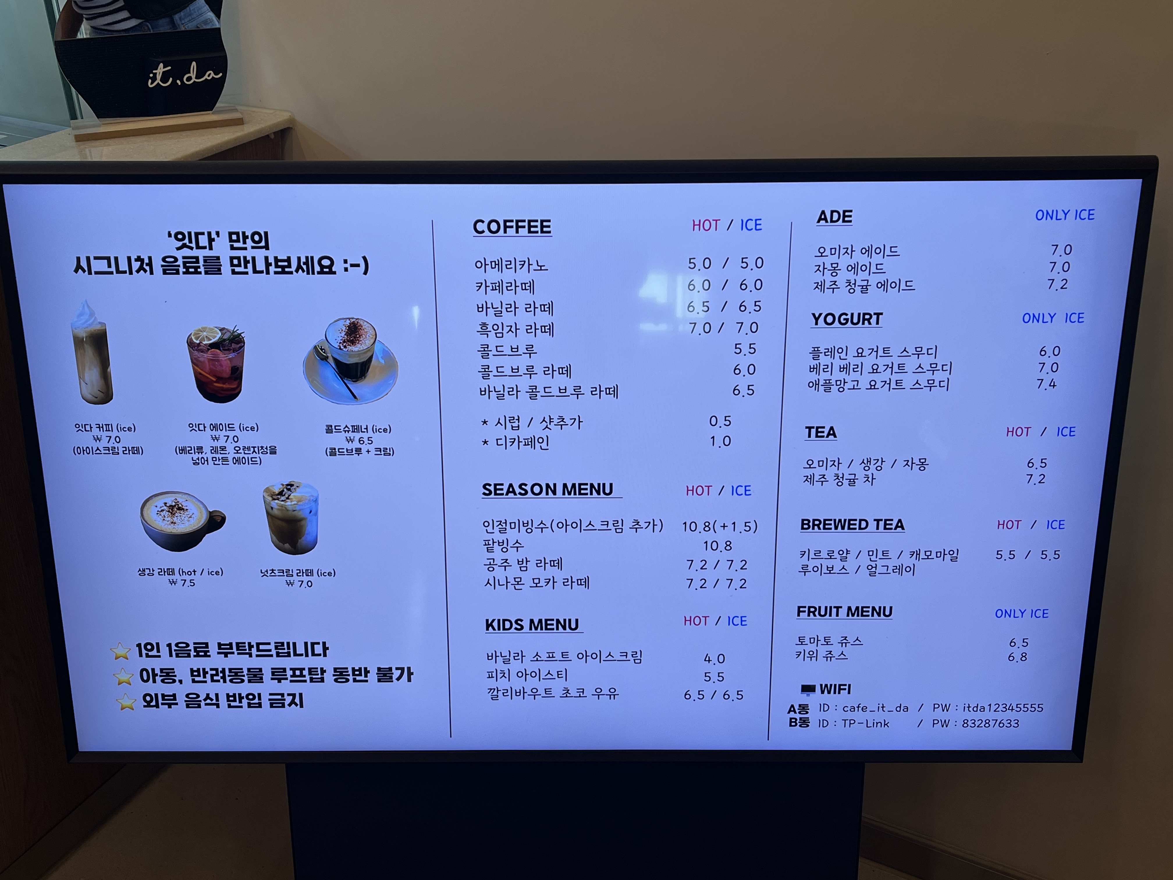 메뉴들은 가격대가 약간 있는 편이긴했으나, 요즘 카페들 다 이정도는 하더라구요
