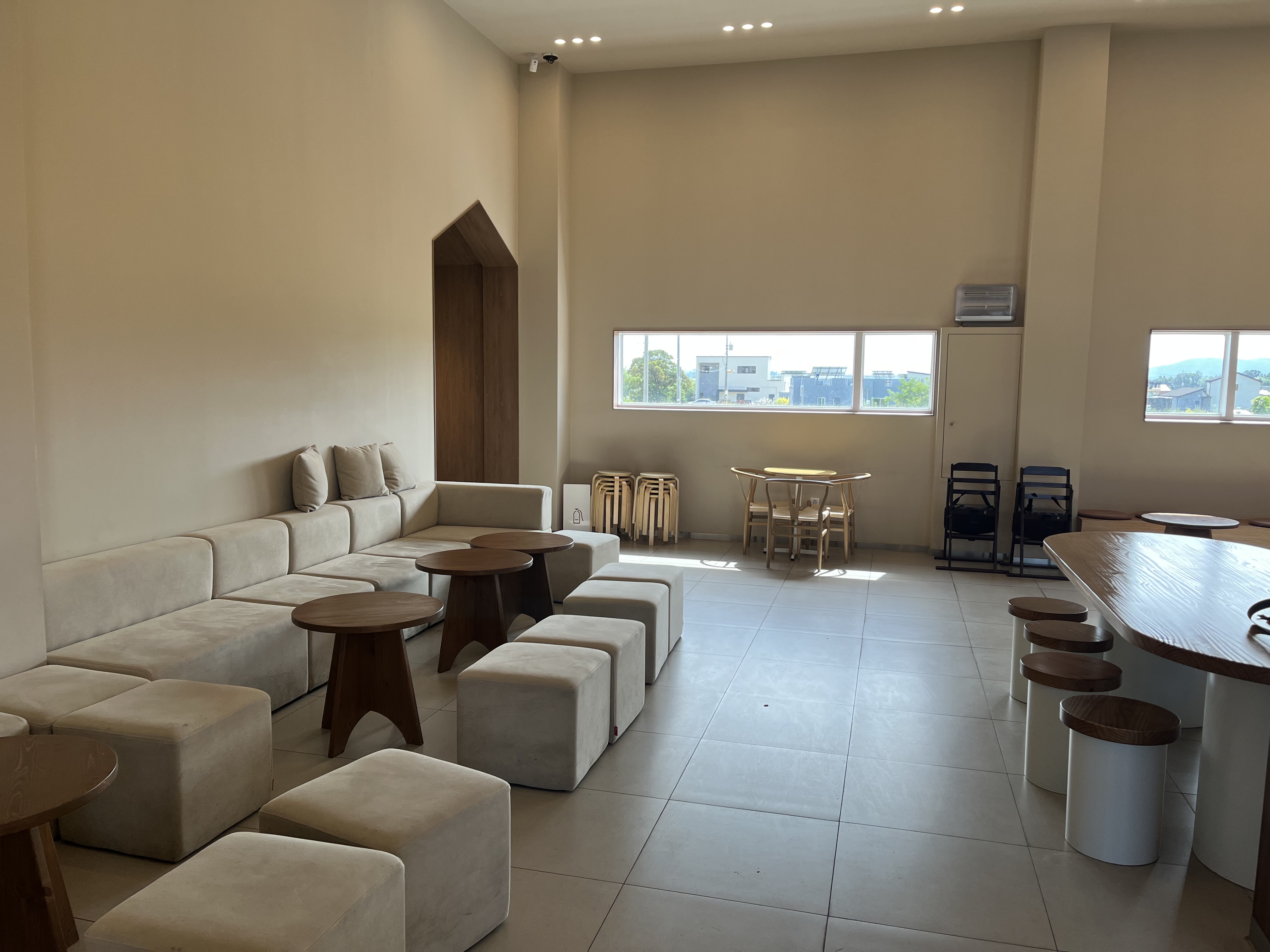 카페는 건물 두 동이 중간통로로 연결된 형태입니다