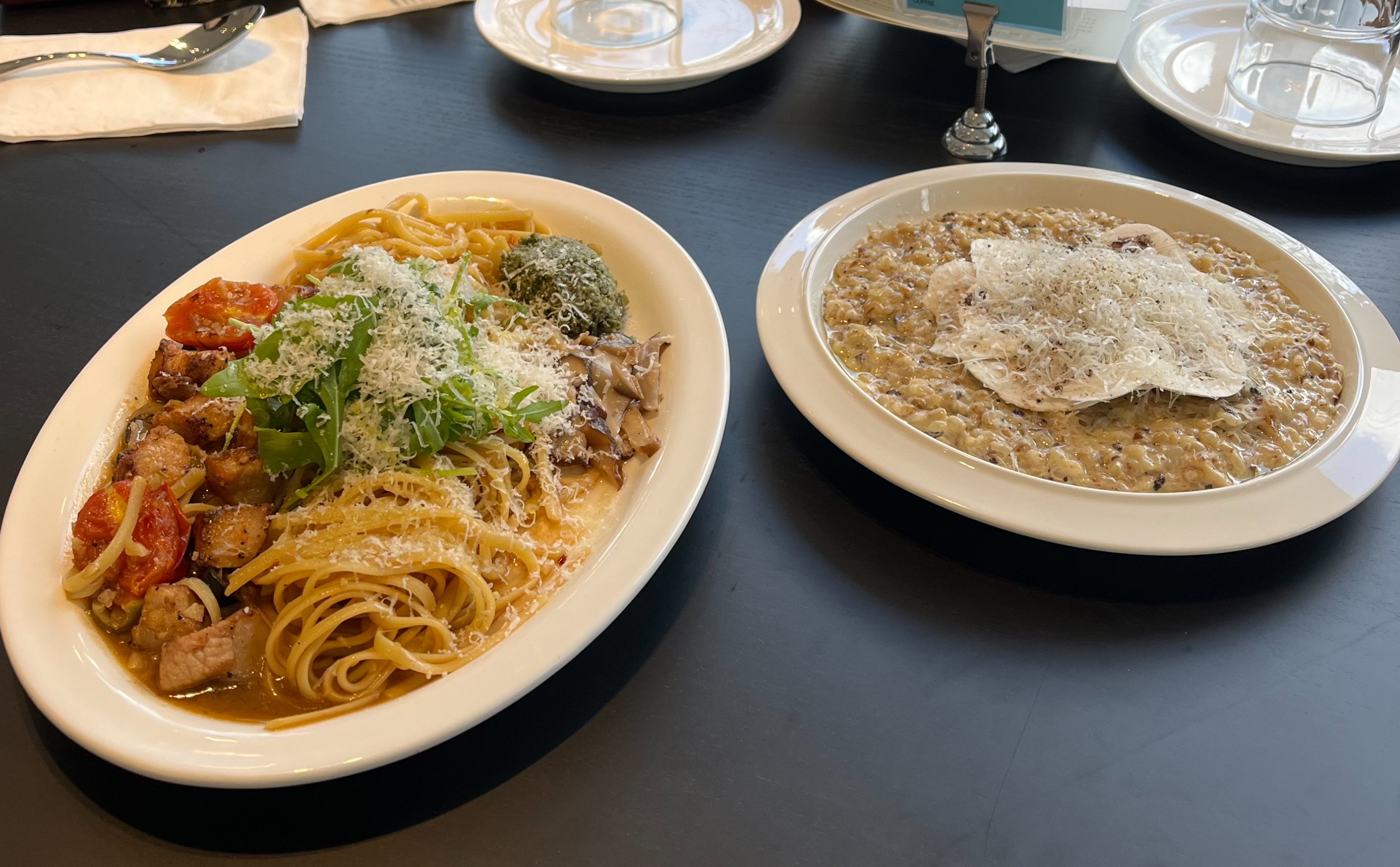 저는 항정살 오일 파스타와 양송이 크림 리조또를 주문했어요