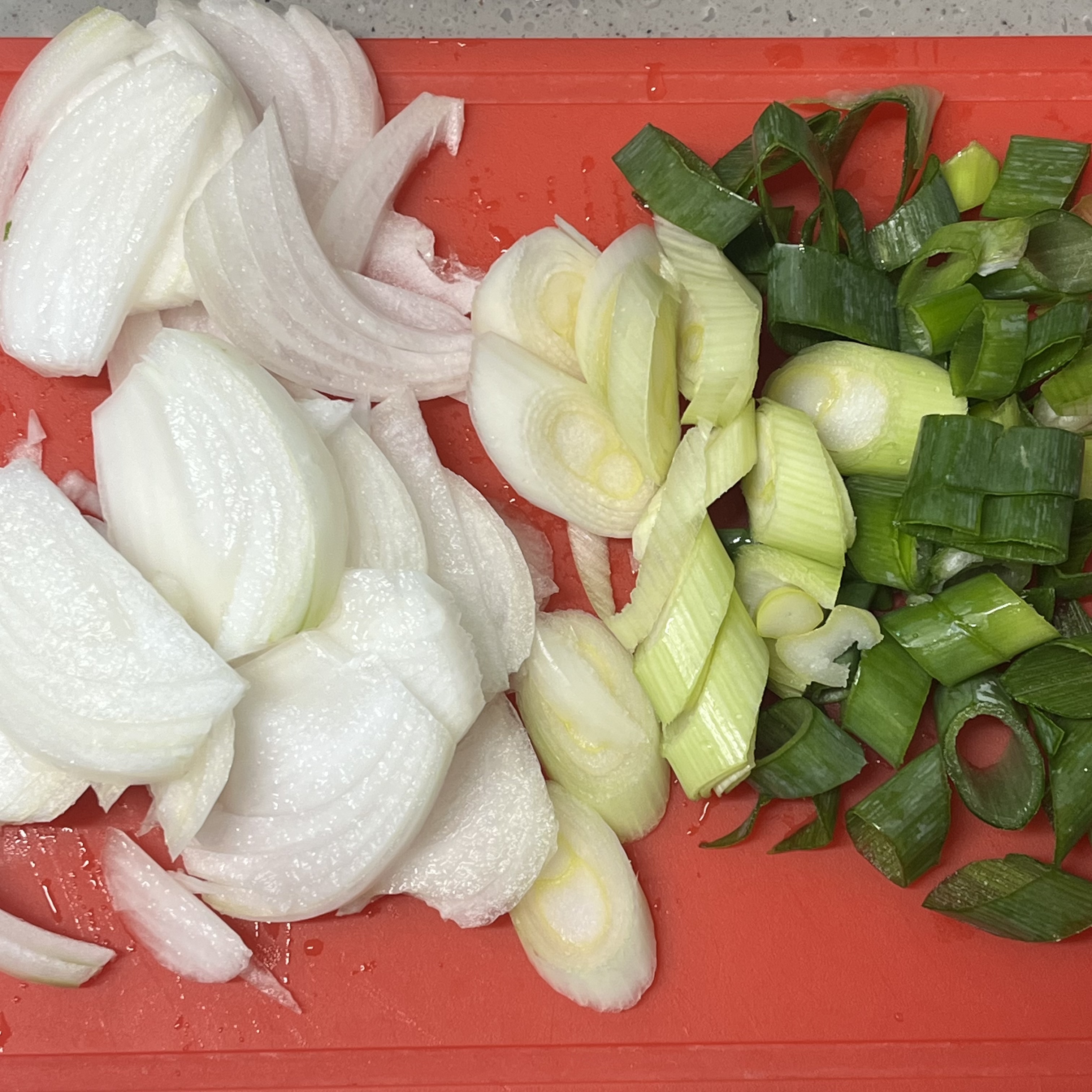 3. 양파와 대파는 먹기좋은 크기로 잘라주세요. 매콤한걸 좋아하시면 청양고추도 함께 준비해주세요.
