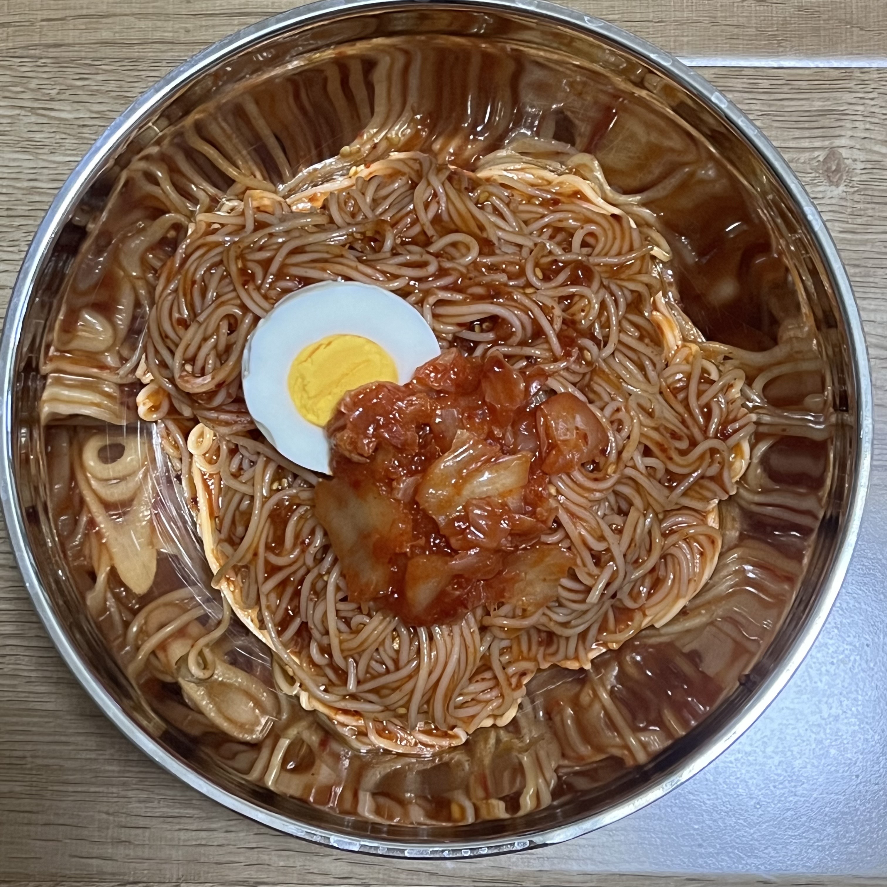 그릇에 담고 양념된 김치와 삶은 달걀을 예쁘게 올려주면 완성입니다.