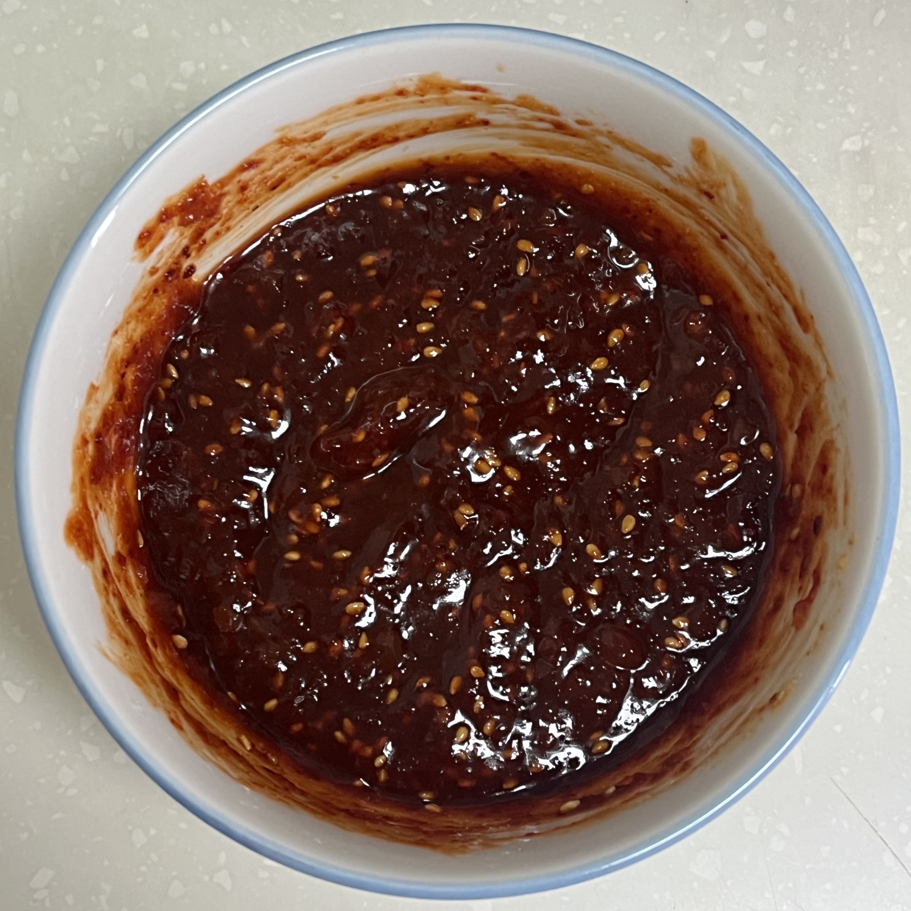3. 고추장 3T, 고춧가루 0.5T, 다진마늘 1T, 진간장 1T, 알룰로스(설탕) 2T, 매실청 1T, 식초 4T, 참기름 1T, 깨를 넣고 잘 저어 양념장을 만들어 주세요.