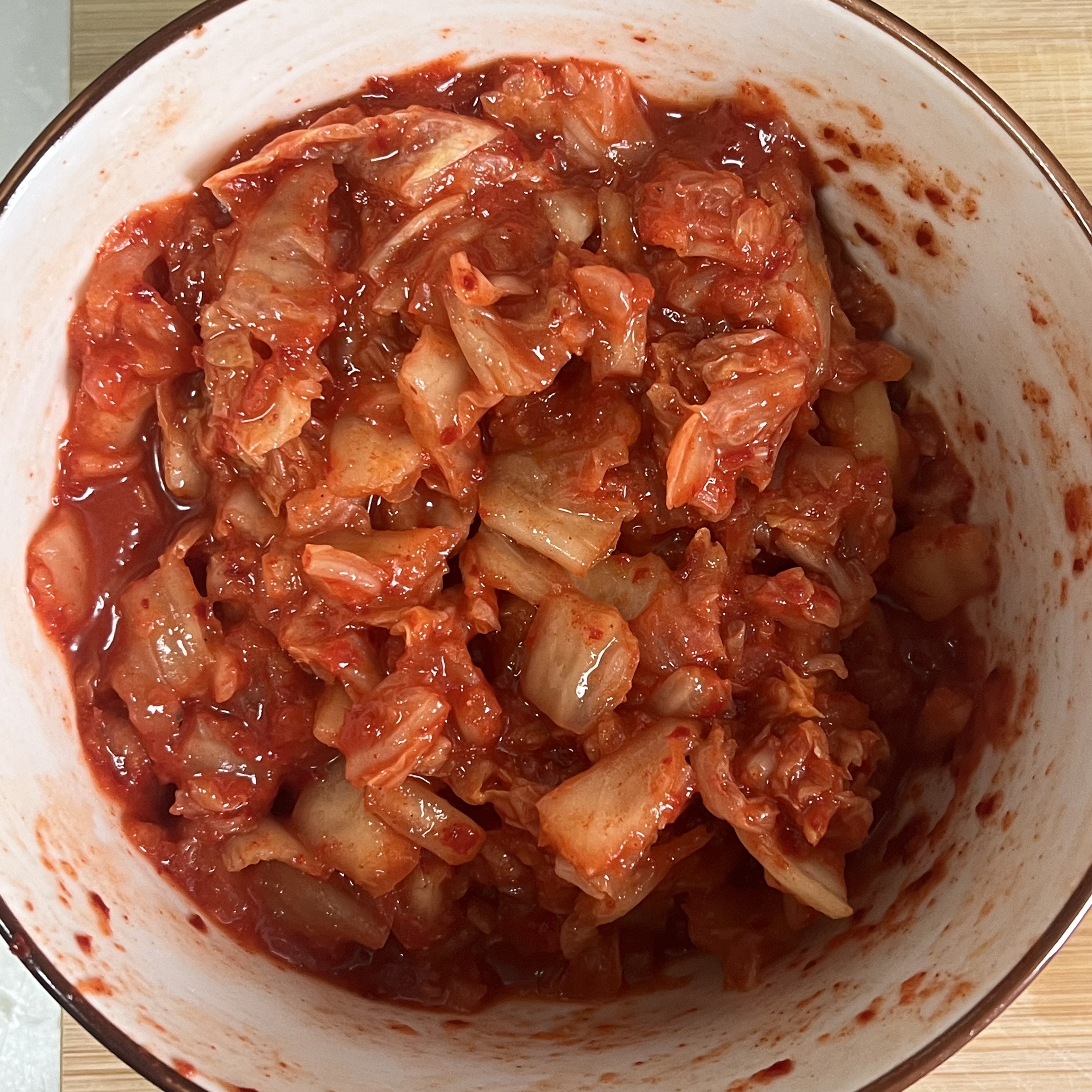 4. 잘게 자른 김치에 설탕과 참기름 조금을 넣고 잘 섞어주세요. 고명으로 사용할거에요.