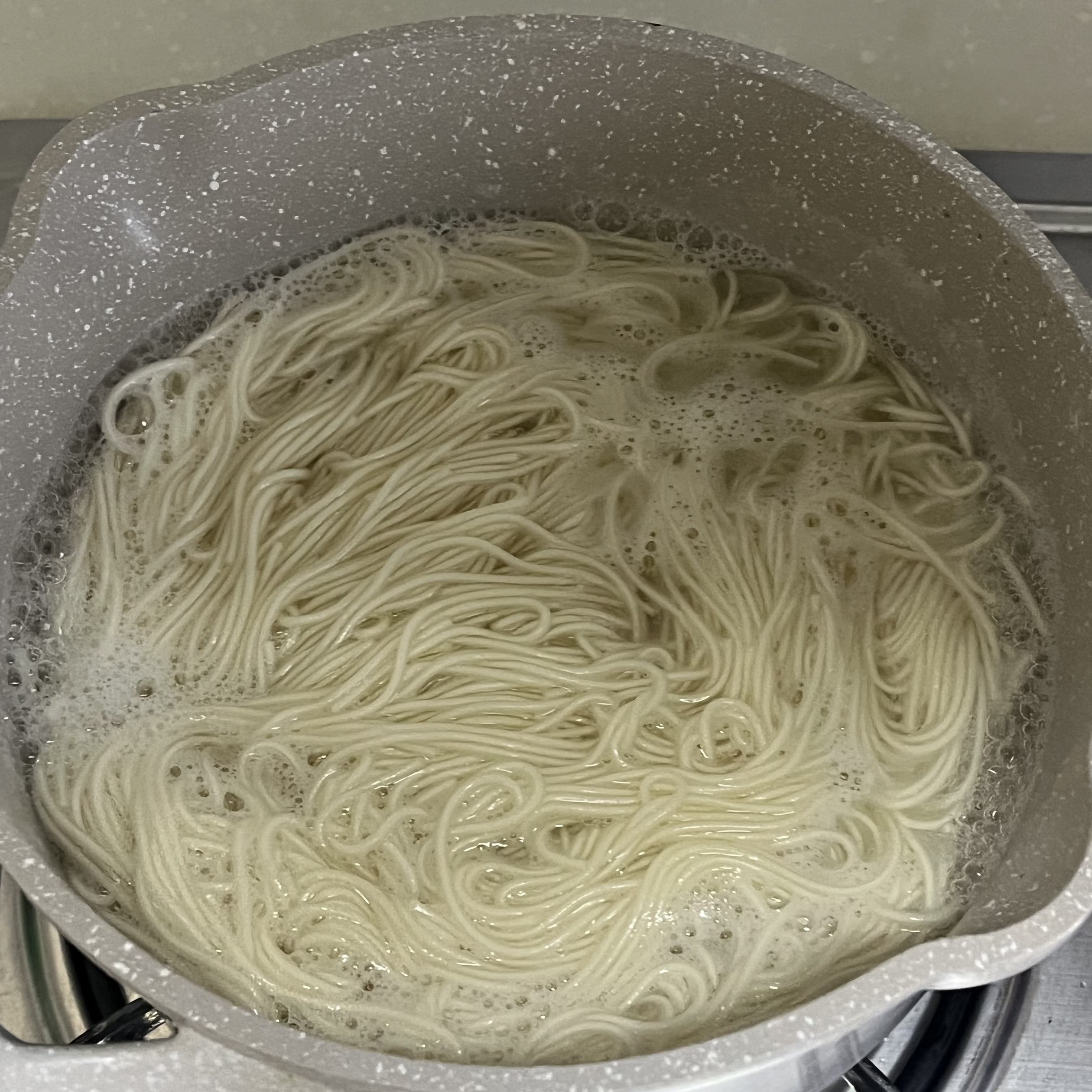 1. 냄비에 물을 넣고 끓으면 소면을 넣고, 면이 뭉치지 않게 풀어주세요.