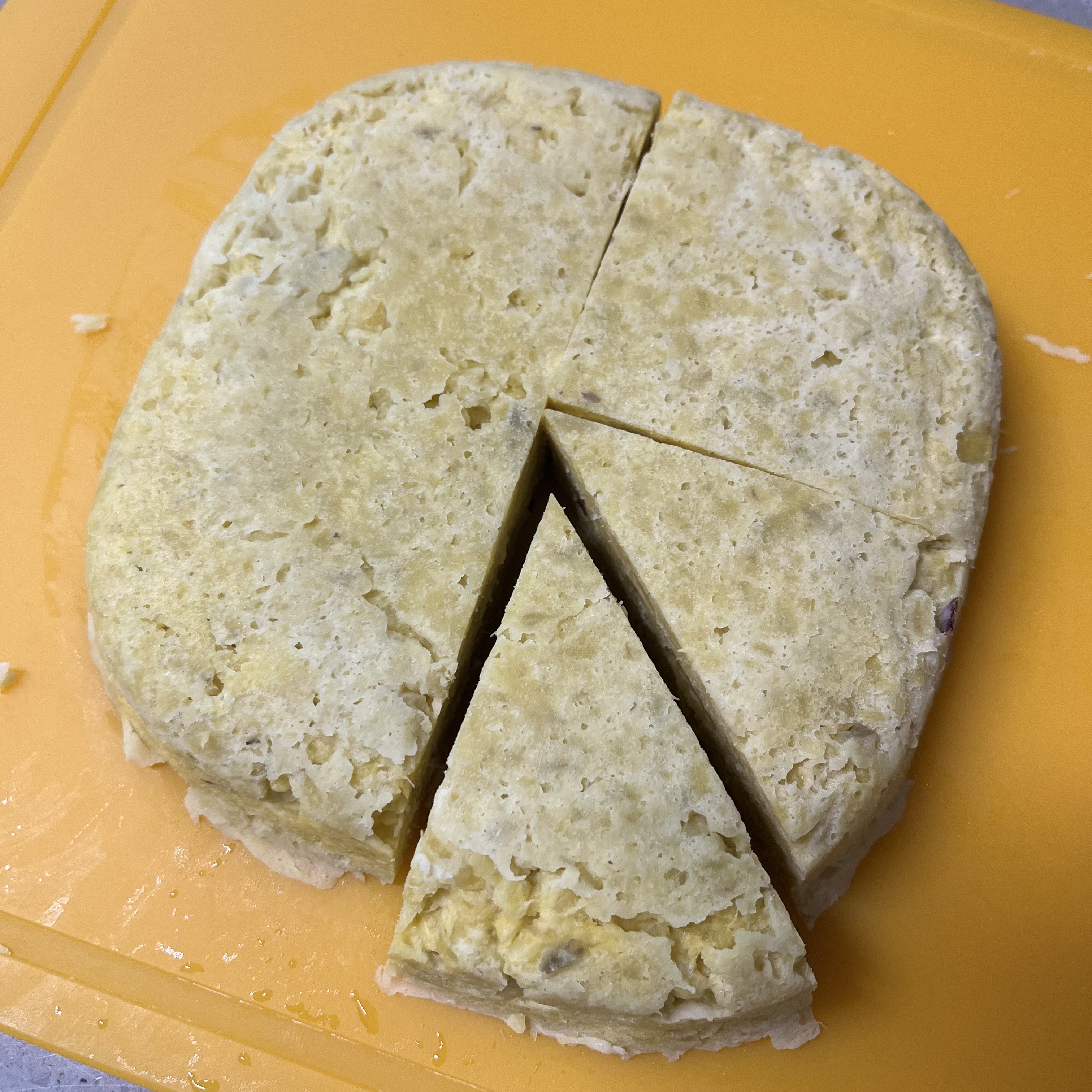 다 섞인 반죽은 전자레인지용 용기에 넣어주는데요