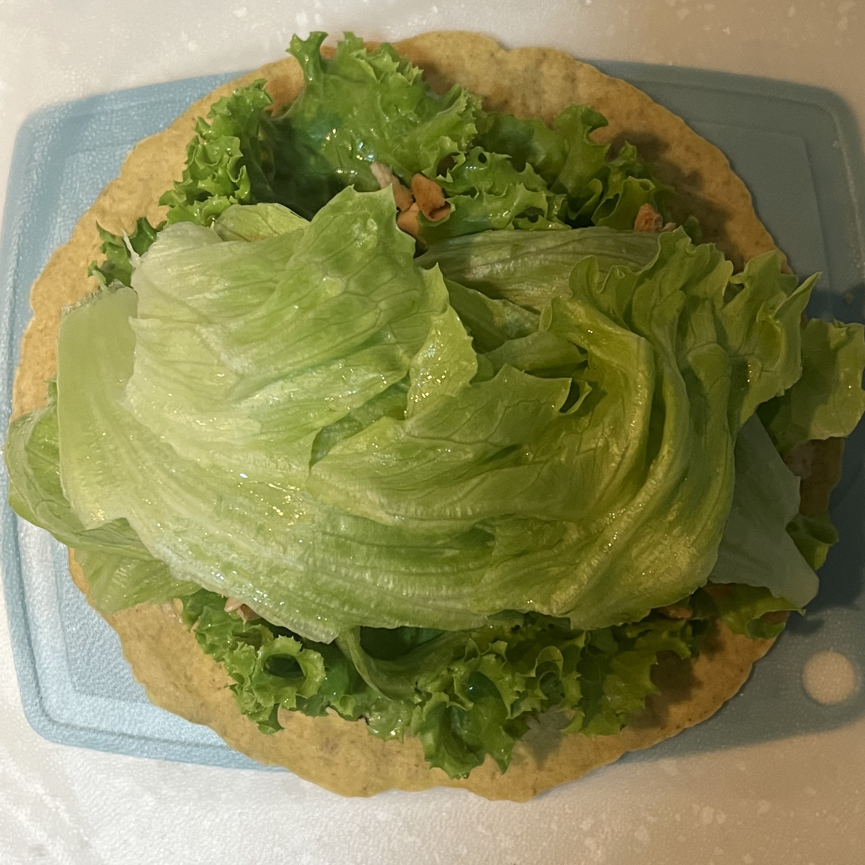 5. 그 위에 상추, 양상추, 닭안심 등 원하는 재료를 올려주세요.