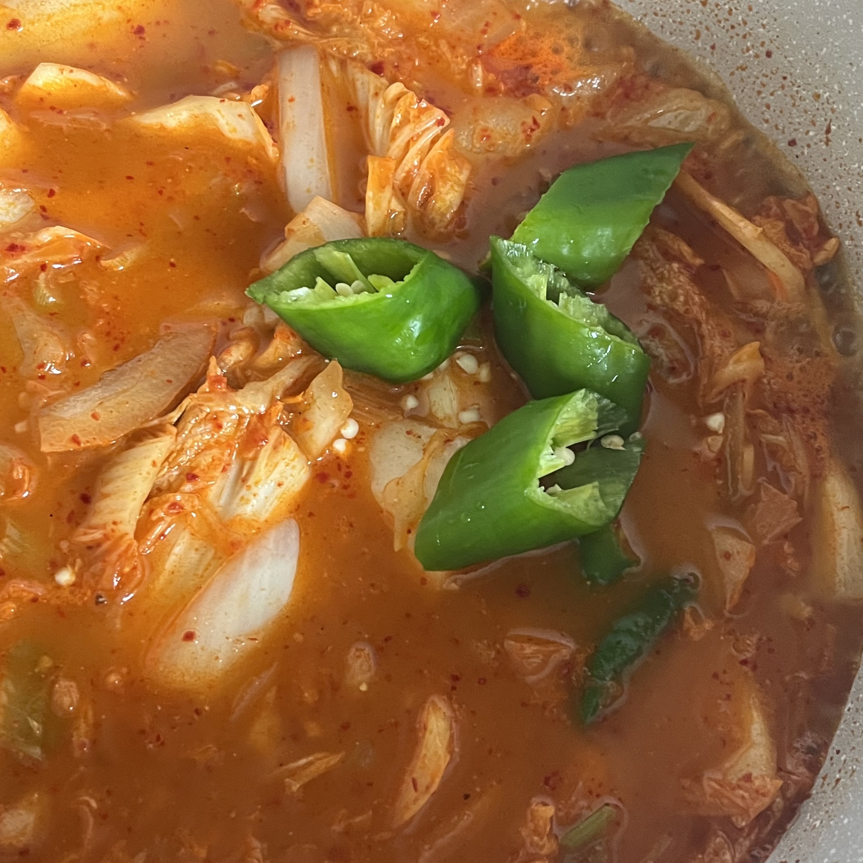 5. 청양고추도 넣고, 끓어오르면 간을 보고 기호에 따라 간장, 소금을 조절해주세요. 후춧가루도 톡톡 뿌려주세요.