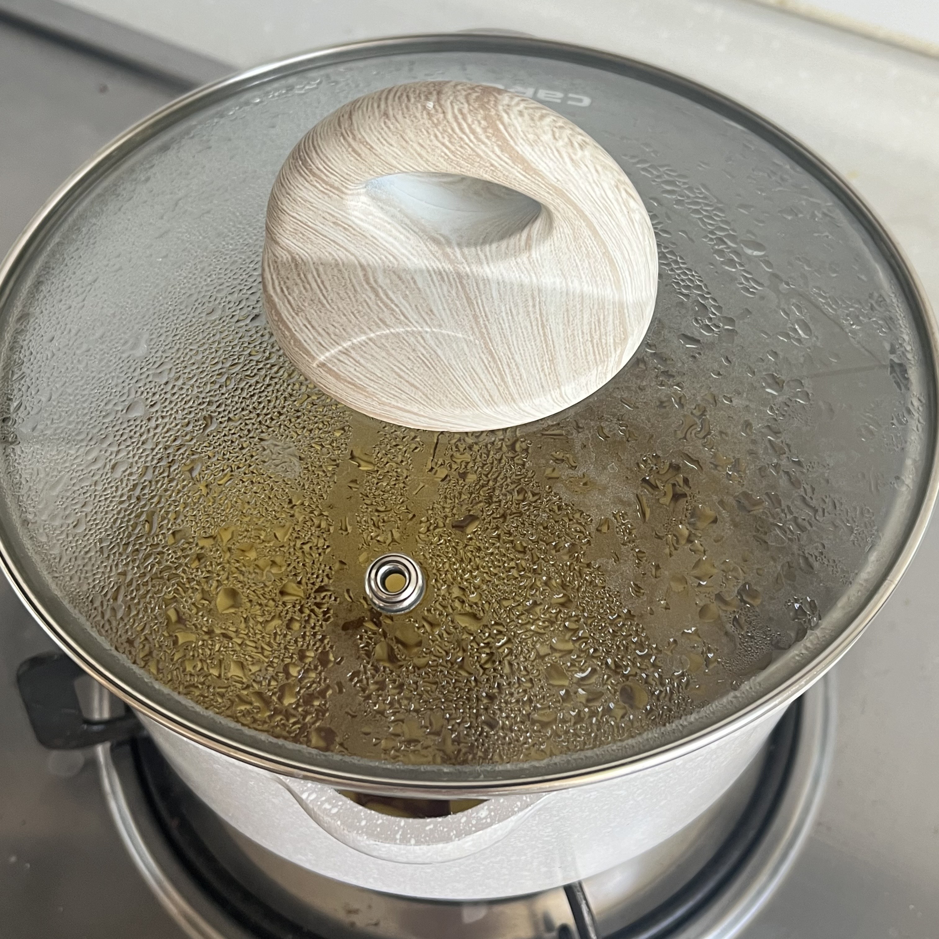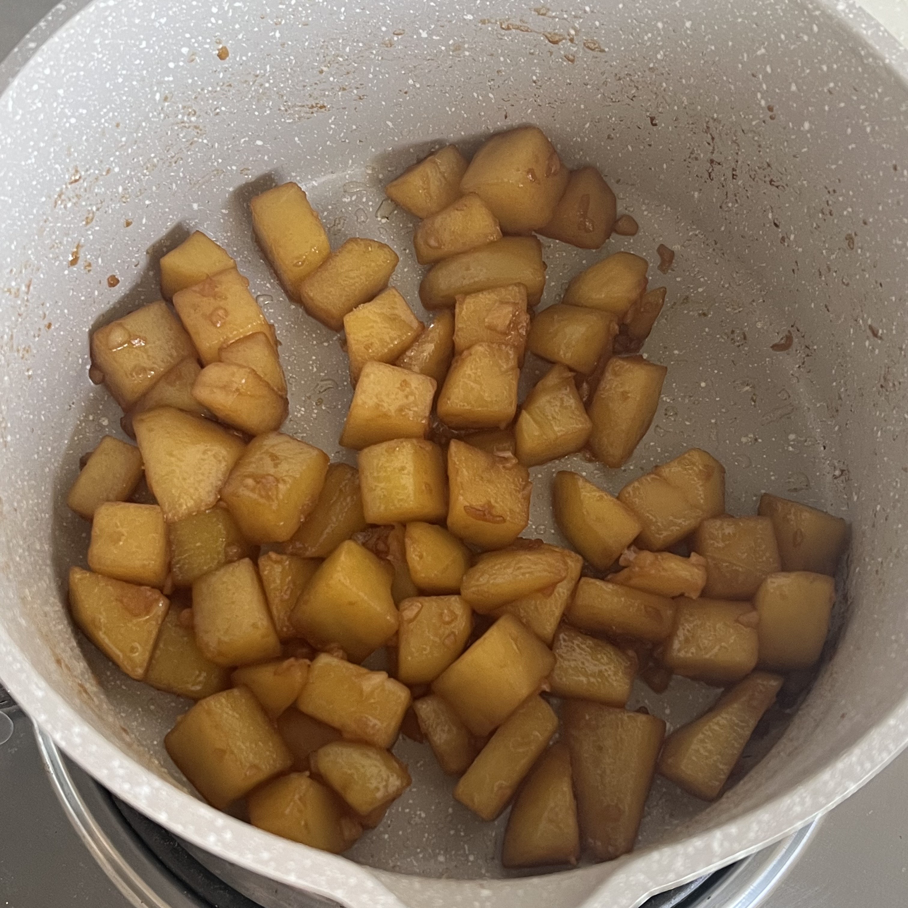 3. 물기를 제거한 감자를 냄비에 담고, 올리고당 3T를 두르고 섞어준 후 20분 정도 재워주세요.