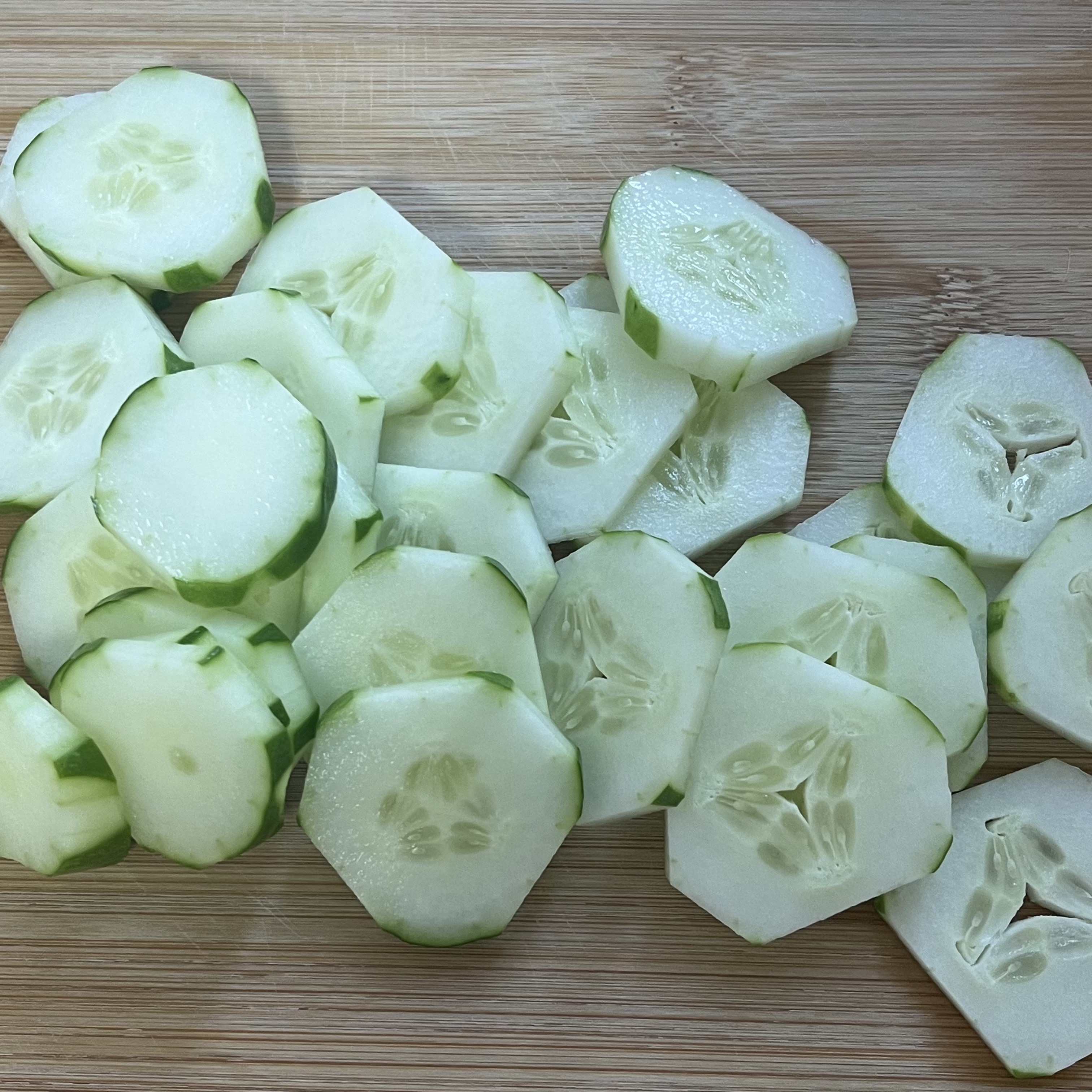 오이를 양념장에 버무리고 두면 금방 물이 생기니 먹기 직전!에 무쳐주세요.