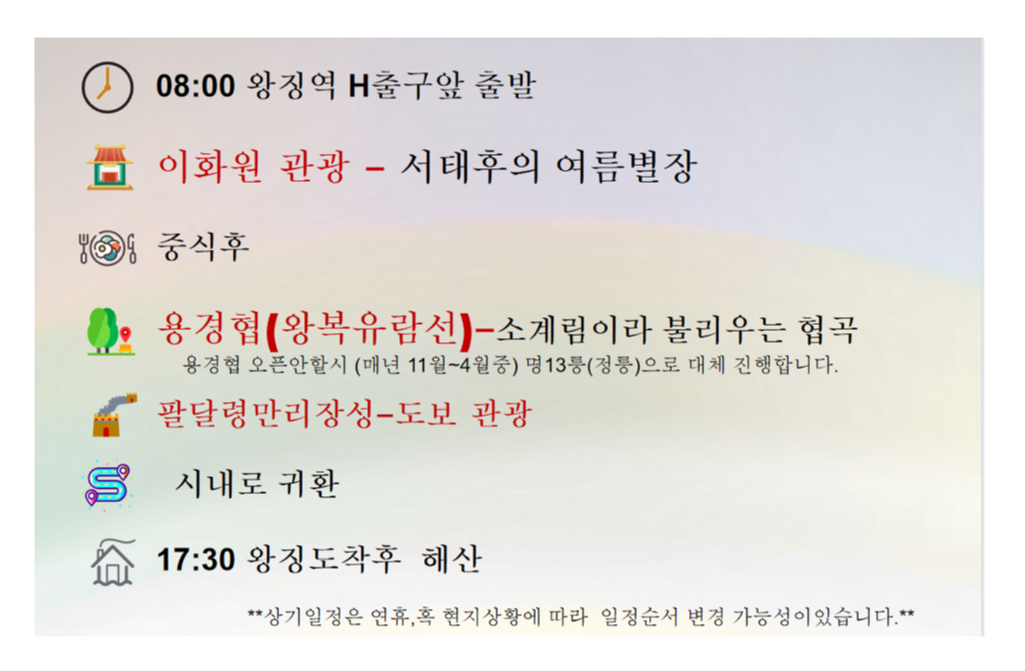 오늘의 이화원&팔달령만리장성&용경협 투어는 경이로움을 느낄 수 있었던 곳들이었습니다.