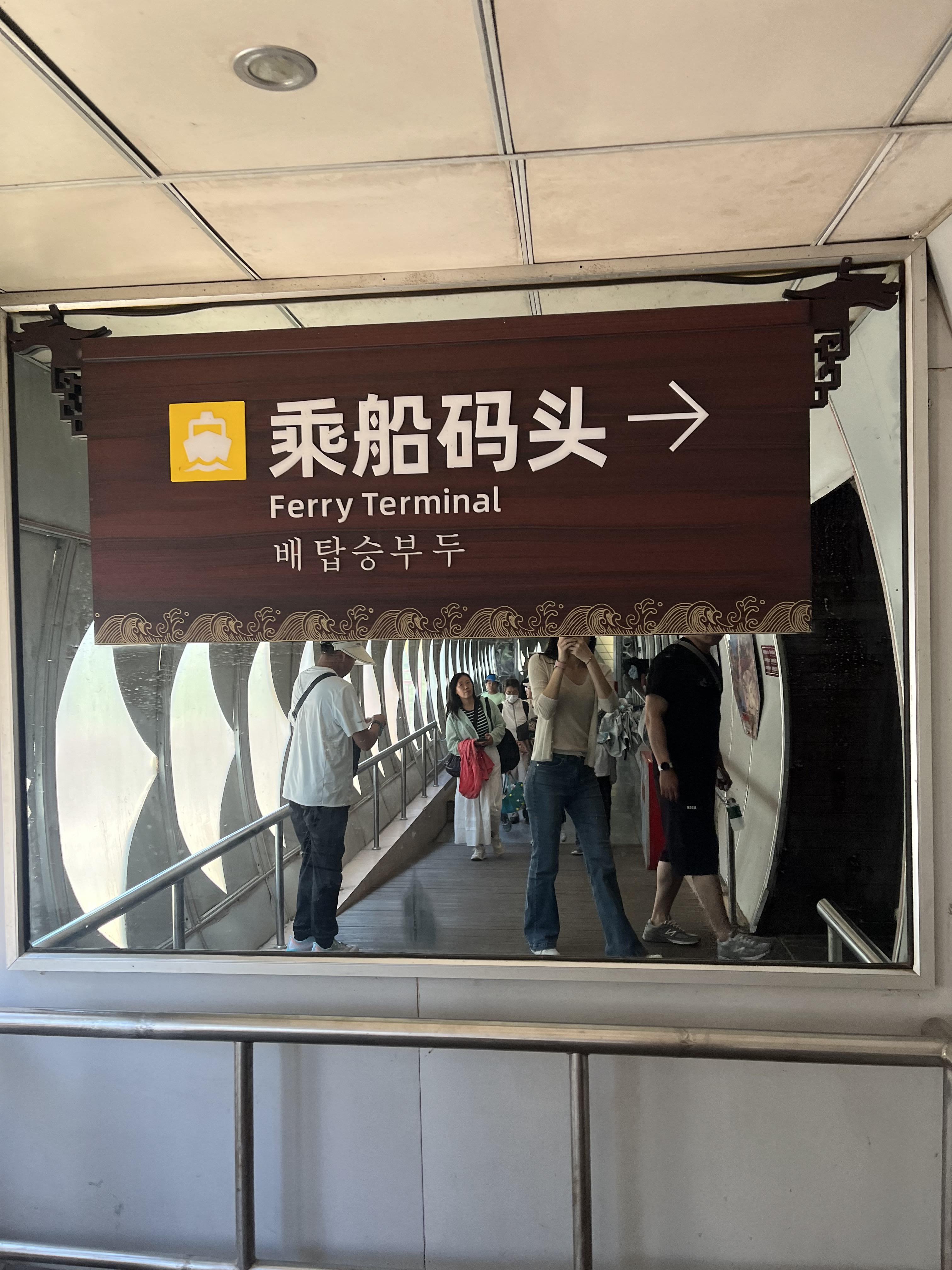 용모양으로 생긴 터널 안쪽에 5-6개 정도의 에스컬레이터가 연결되어져 있고, 이걸 타고 배를 타러 갑니다.