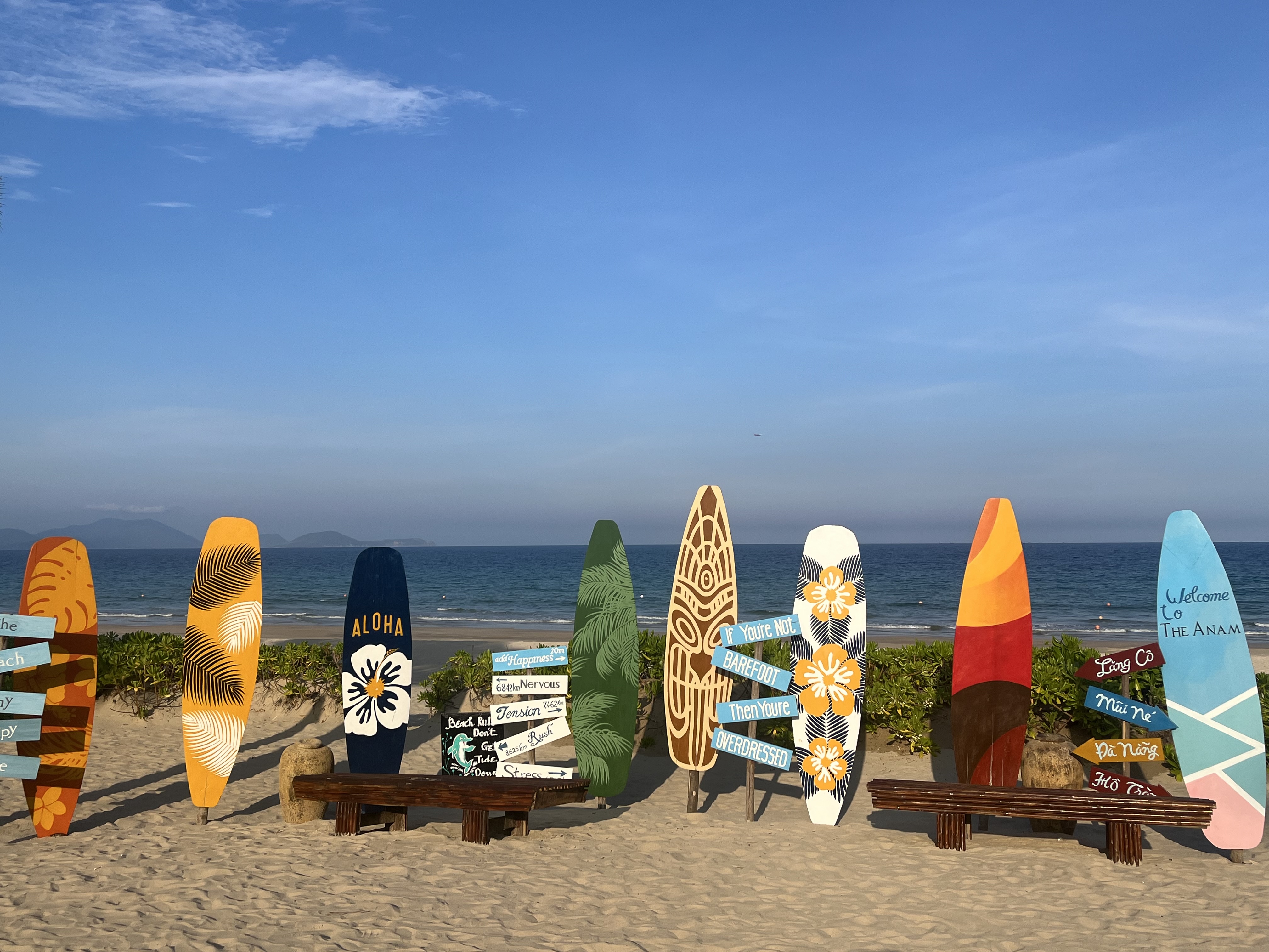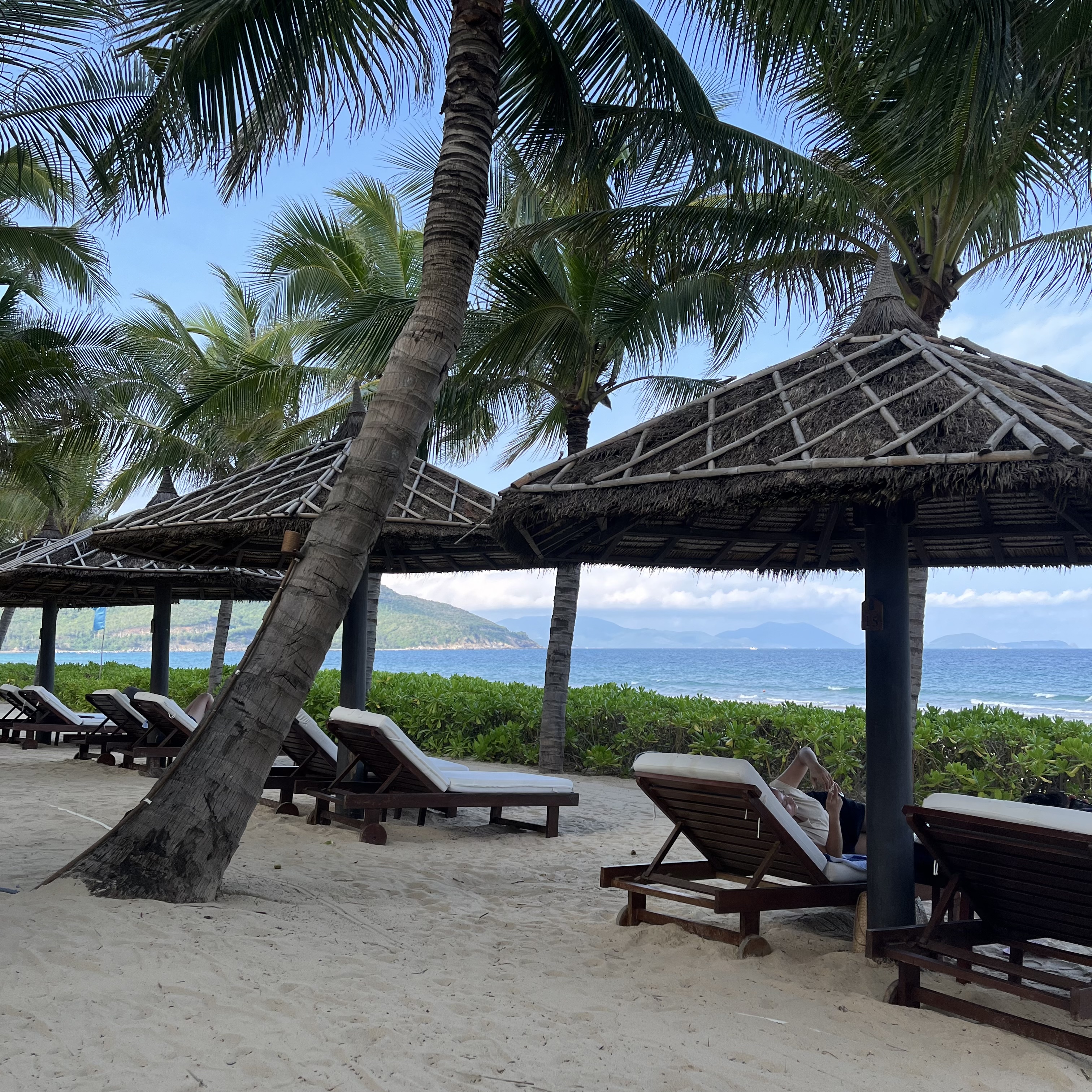 더 아남 내에서 이어진 비치 앞쪽으로도 썬베드, 해먹, 의자 등 앉아서 쉴 곳이 많아요.
