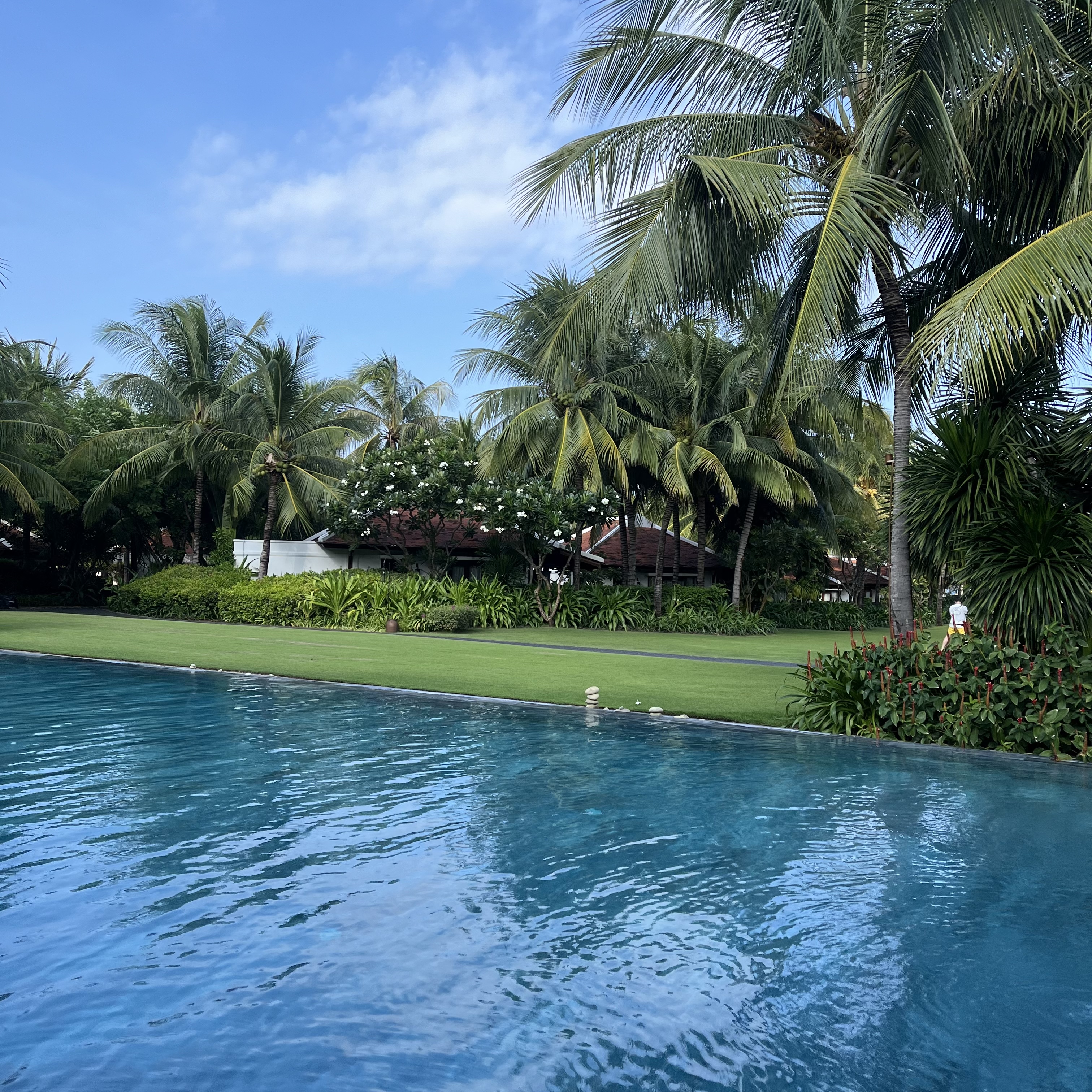 메인 풀 뒤로는 바다까지 탁 트여있어 더아남의 가자 유명한 포토존이랍니다.