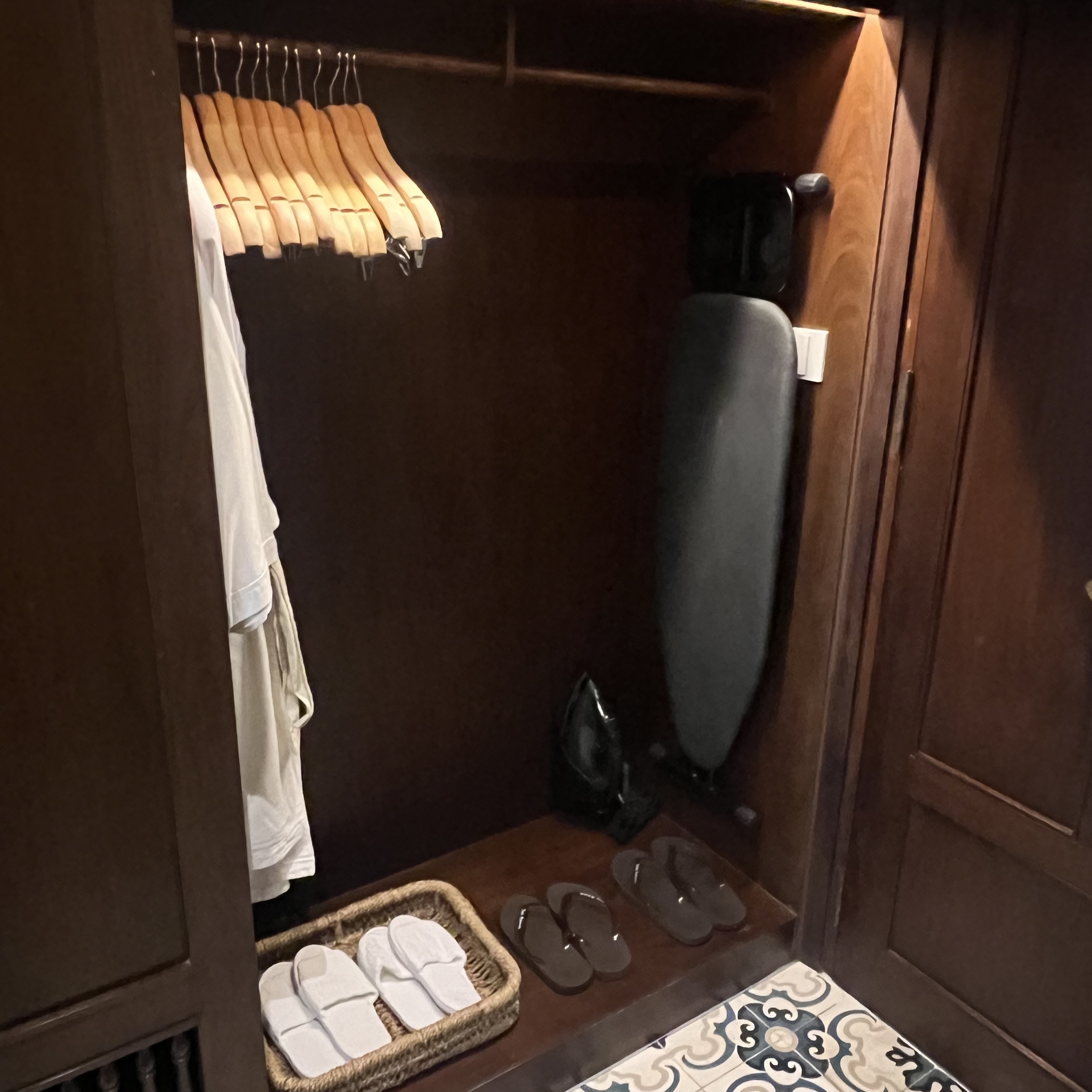실내용 슬리퍼 뿐 아니라 리조트 내에서 신을 쪼리, 물놀이 할때 가져가기 좋은 가방, 모자도 준비되어있어요.