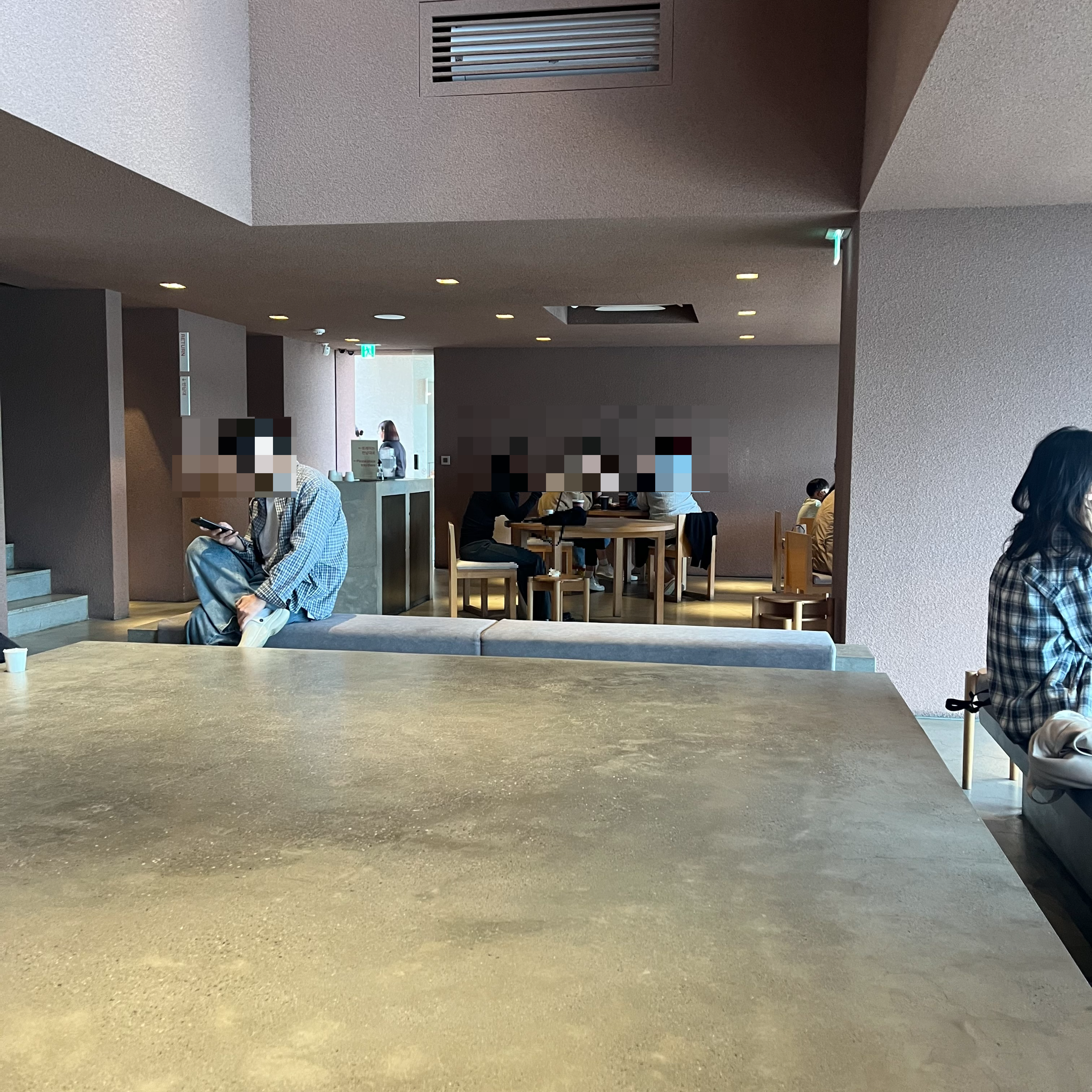의자에 비해 테이블이 낮은 편이고 맞은편 사람들과 눈이 마주칠 수 있어 약간은 불편한 자리였어요.