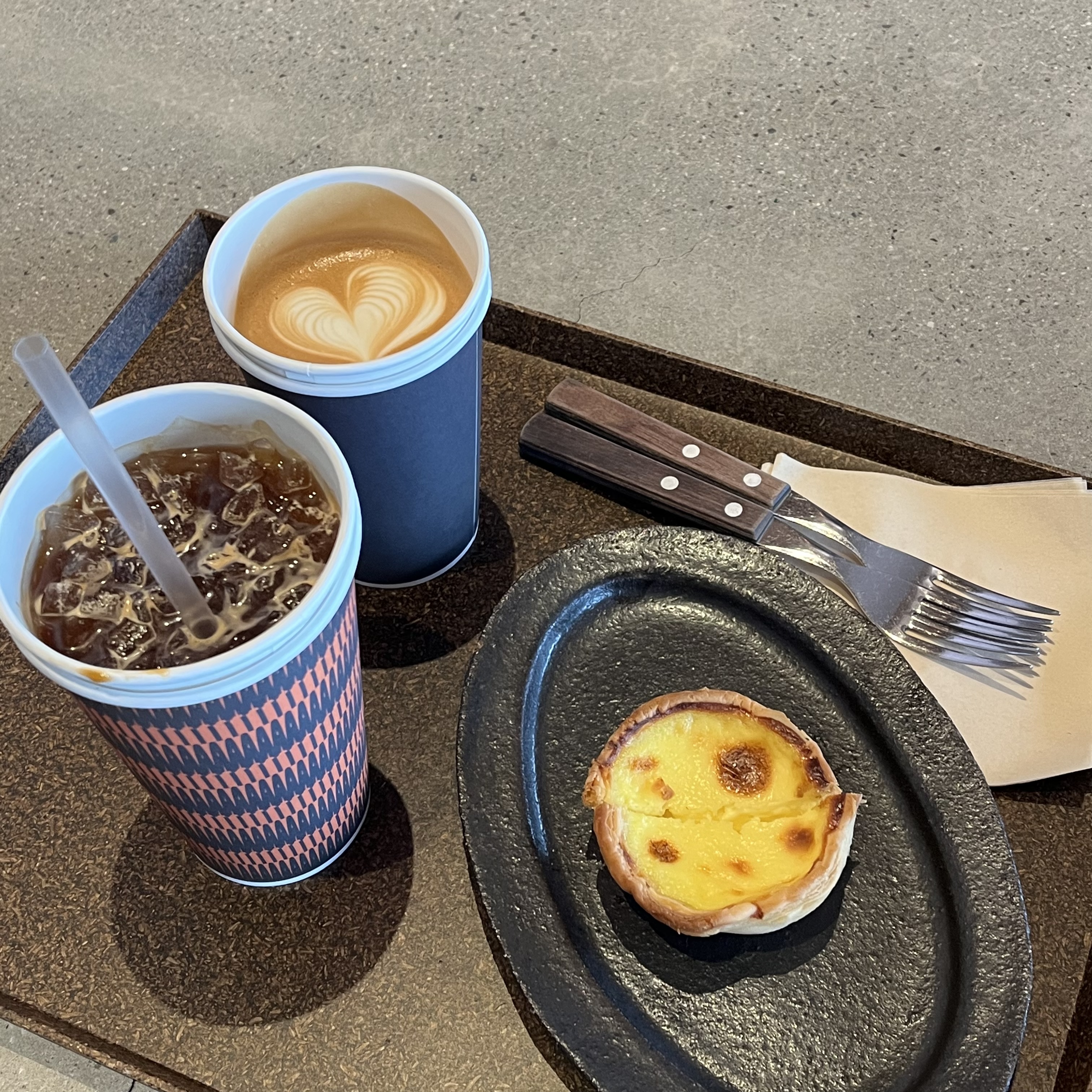 저희는 아메리카노와 라떼, 에그타르트를 주문했어요.