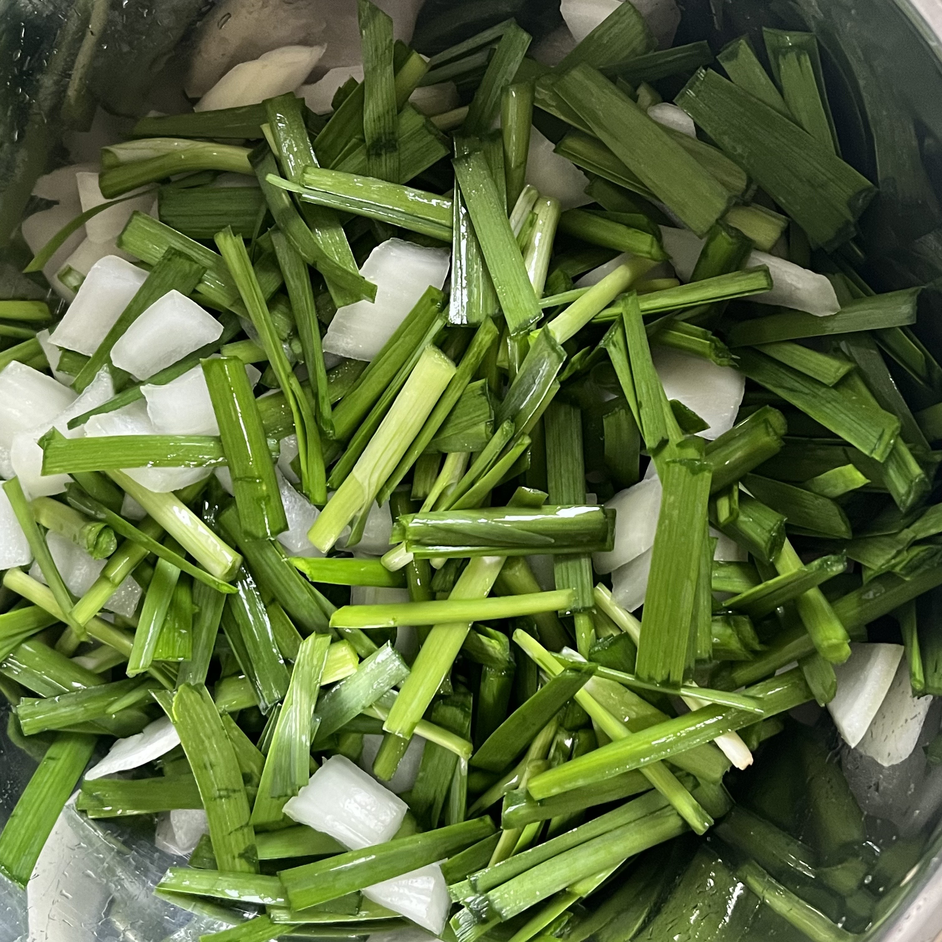 1. 부추와 양파를 깨끗히 손질 후 적당한 크기로 잘라주세요.