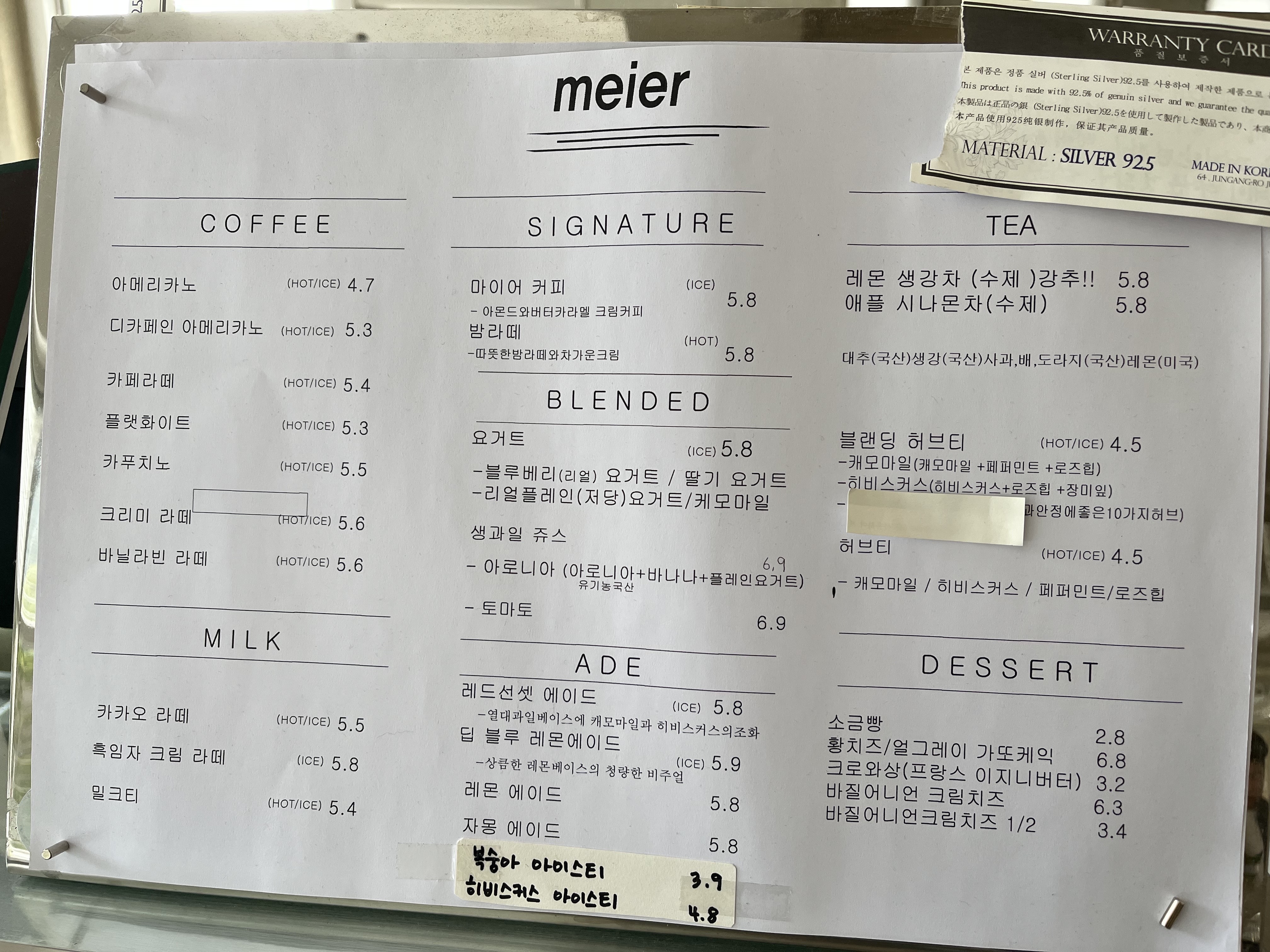 이 곳의 시그니처 메뉴는 마이어커피와 밤라떼 입니다!