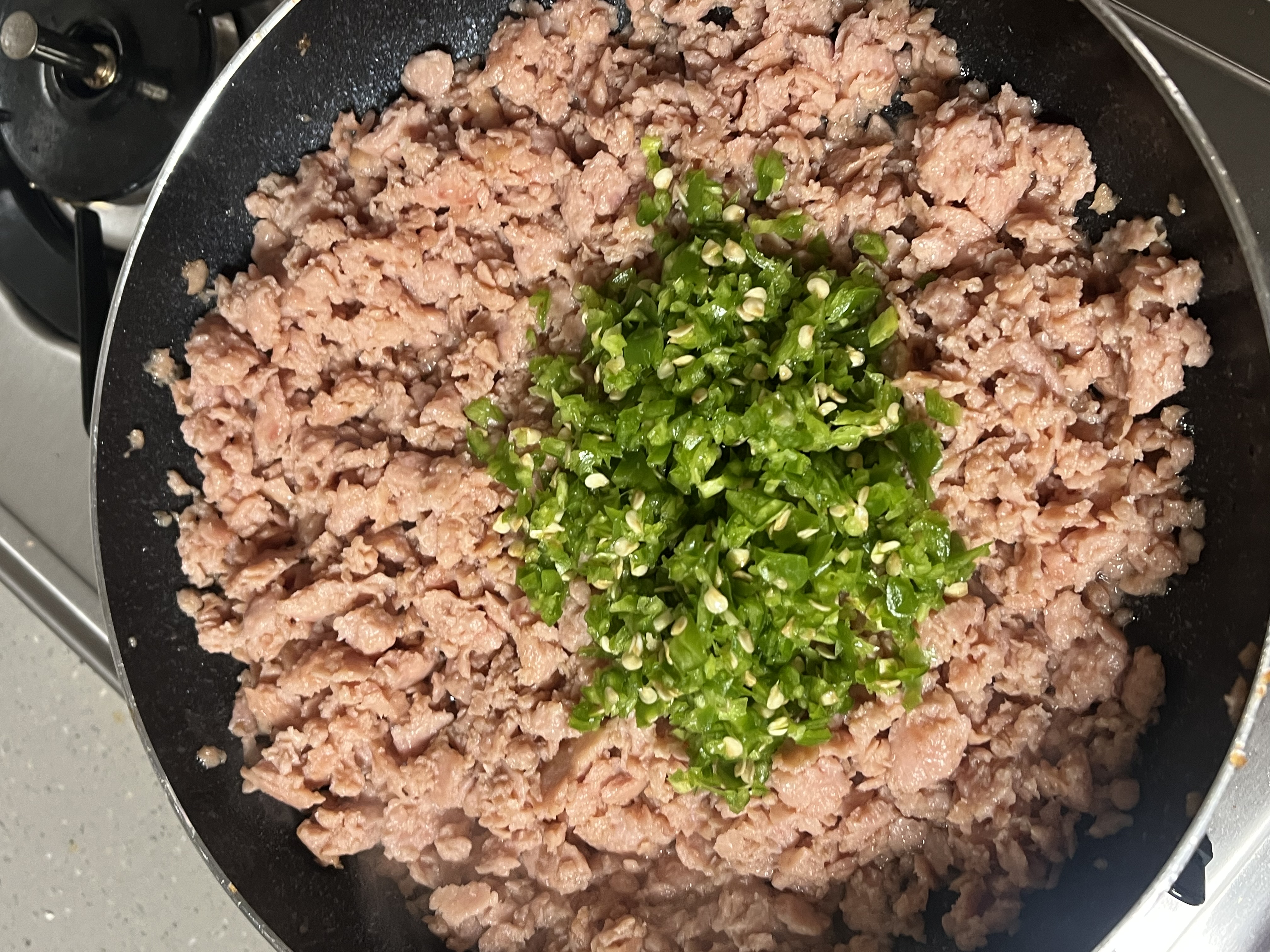 4. 다진 청양고추를 함께 넣고 같이 볶아주세요
