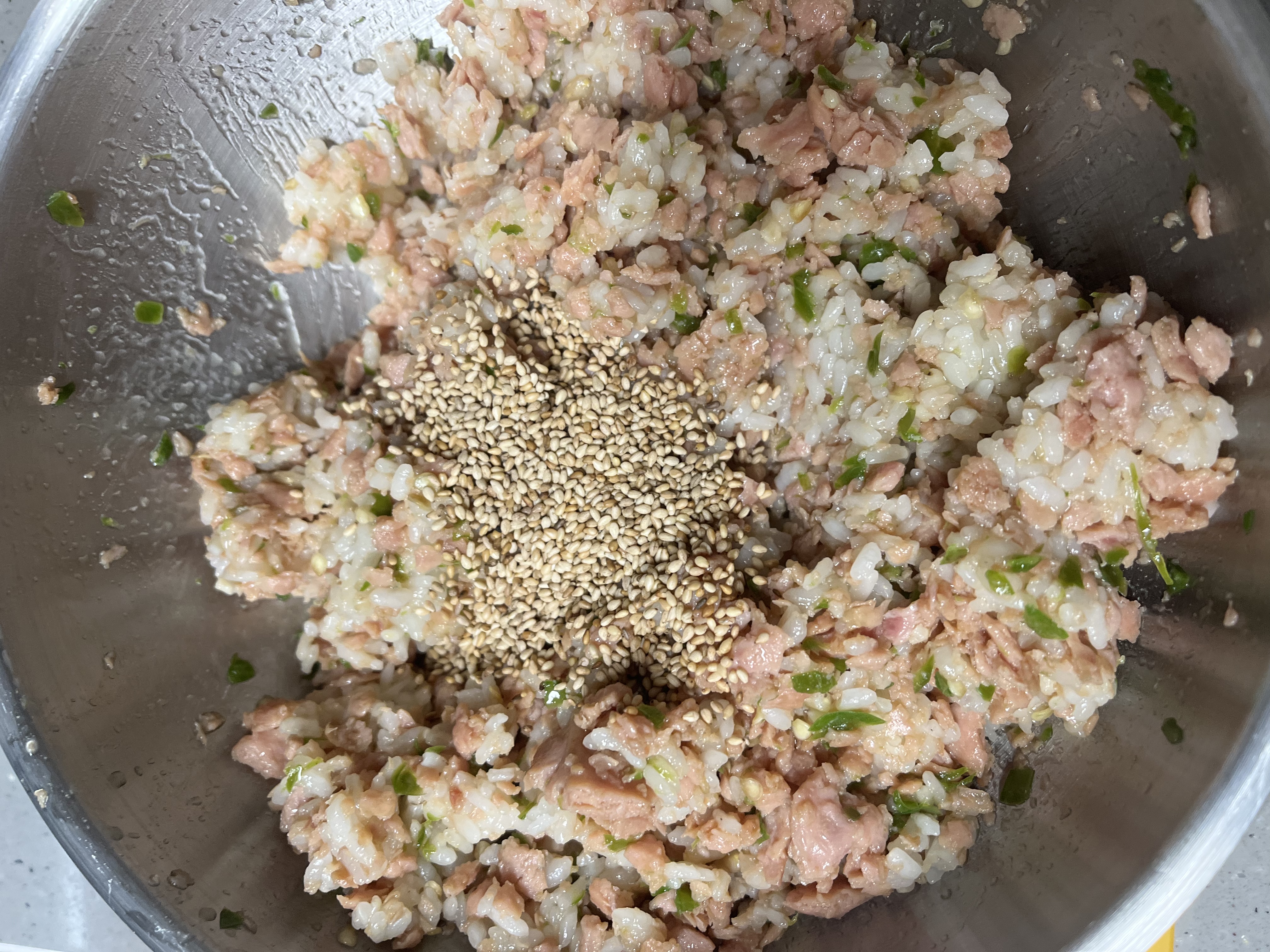 6. 다 볶아지면 밥, 깨와 함께 잘 섞어주세요.
