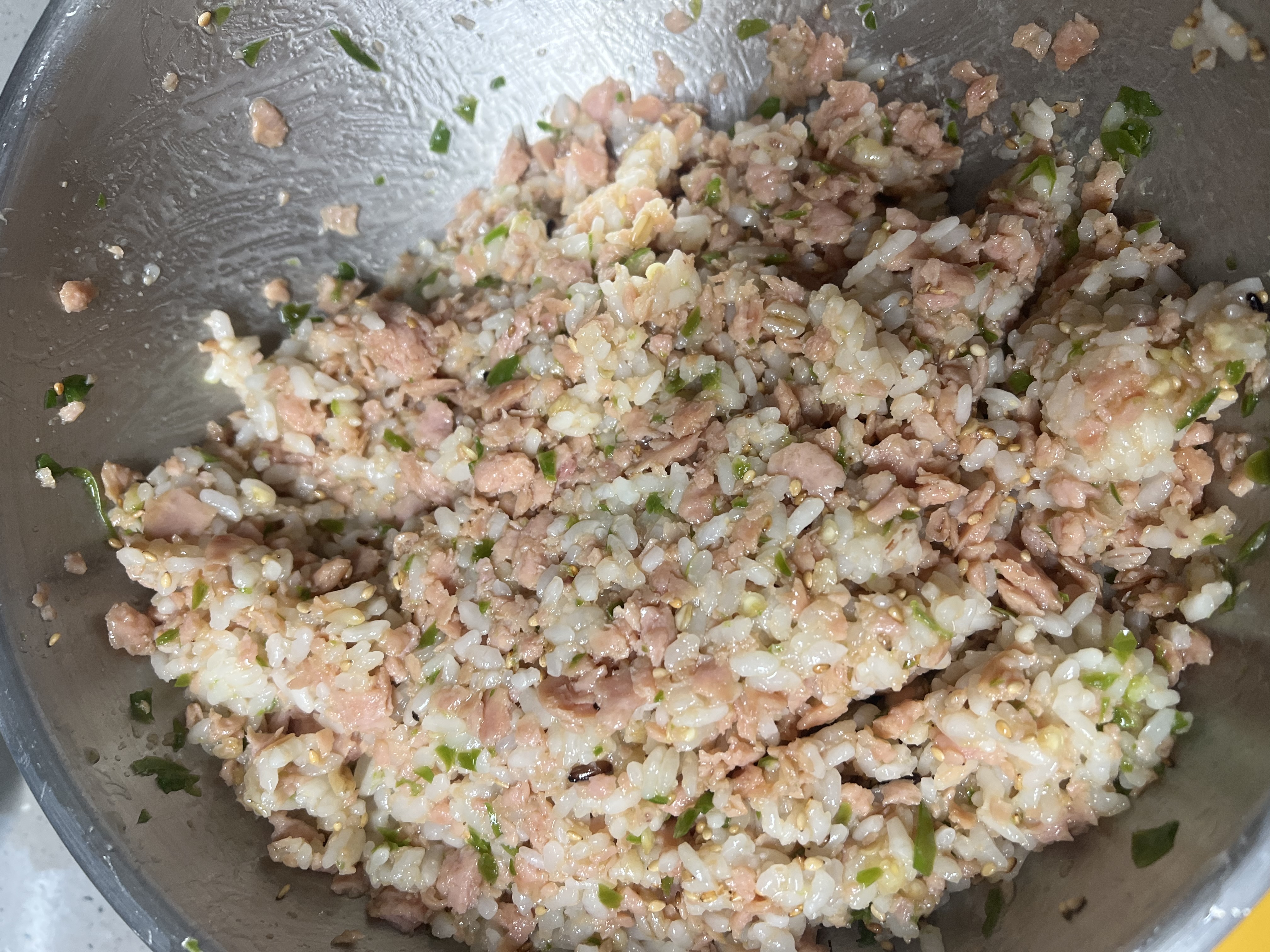1. 스팸을 비닐봉지 안에 넣고 손으로 으깨주세요.