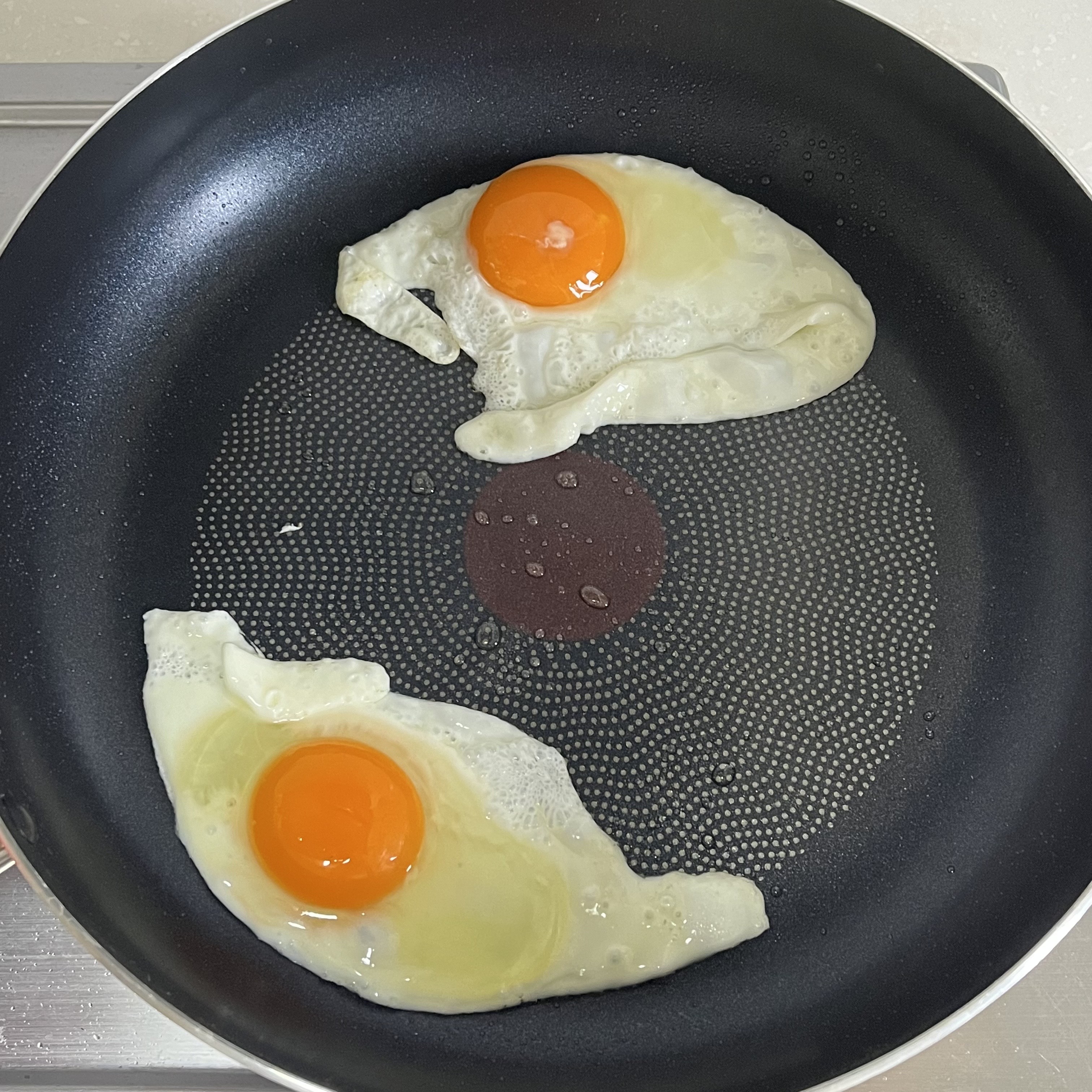 2. 계란 노른자가 반숙이 되도록 구워주세요.