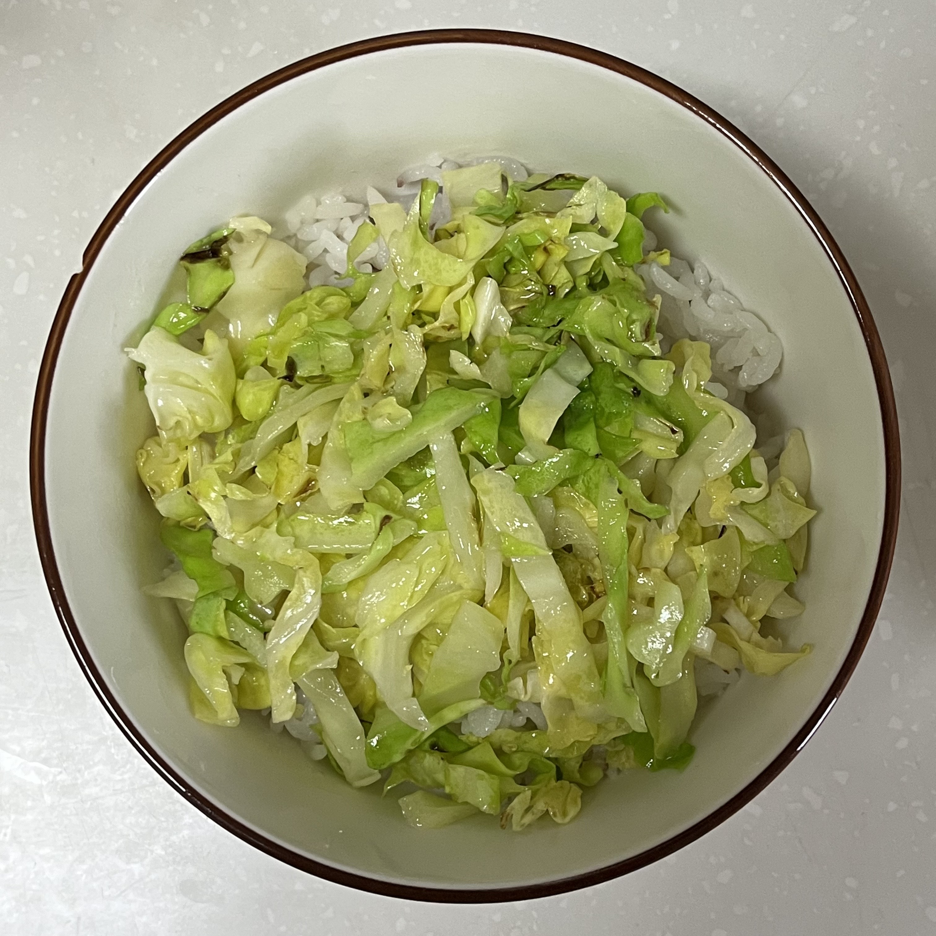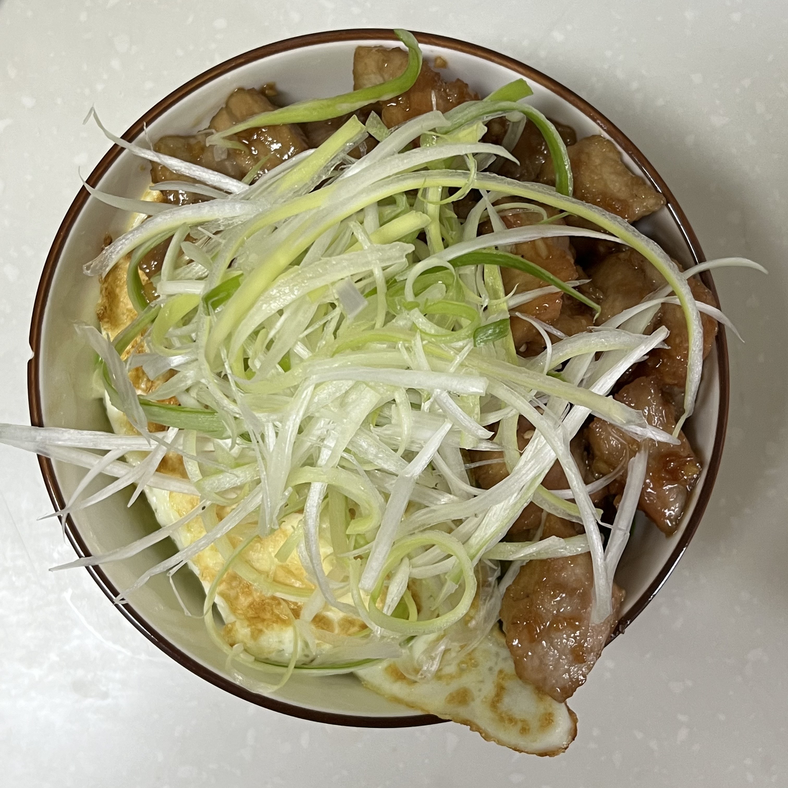 6. 그릇에 밥을 담고, 양배추, 계란, 항정살, 파채를 차례로 올려주면 완성입니다.