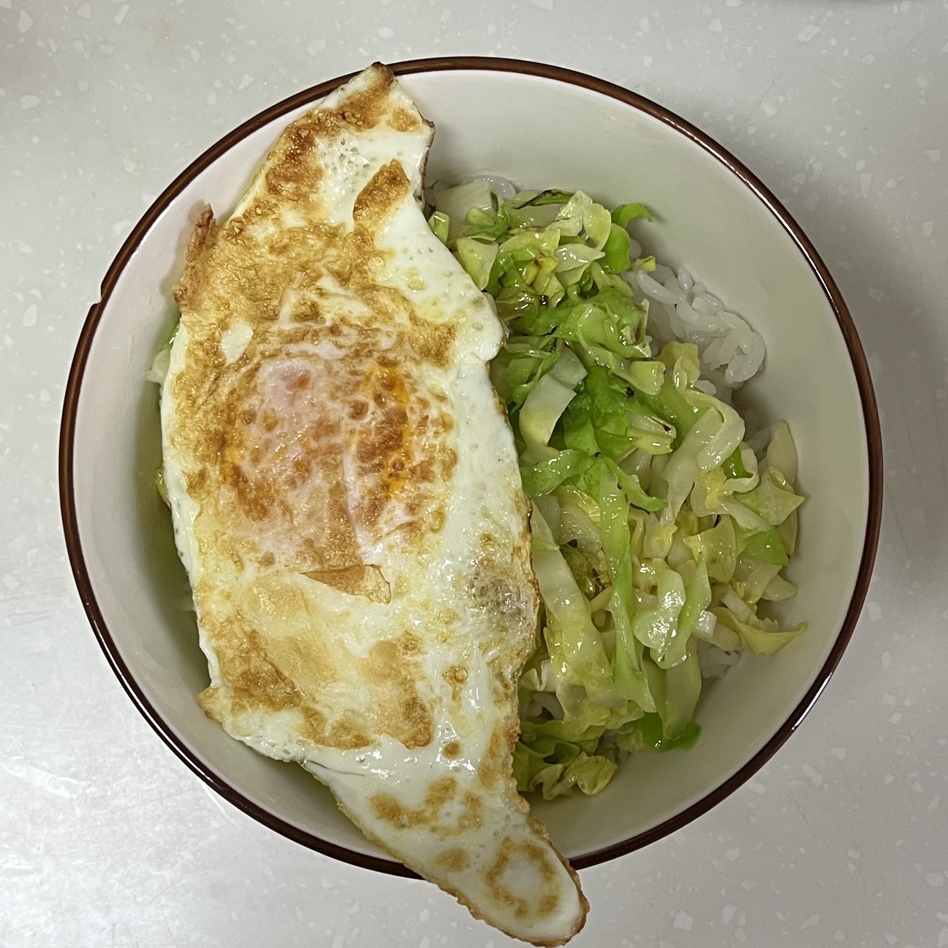 6. 그릇에 밥을 담고, 양배추, 계란, 항정살, 파채를 차례로 올려주면 완성입니다.