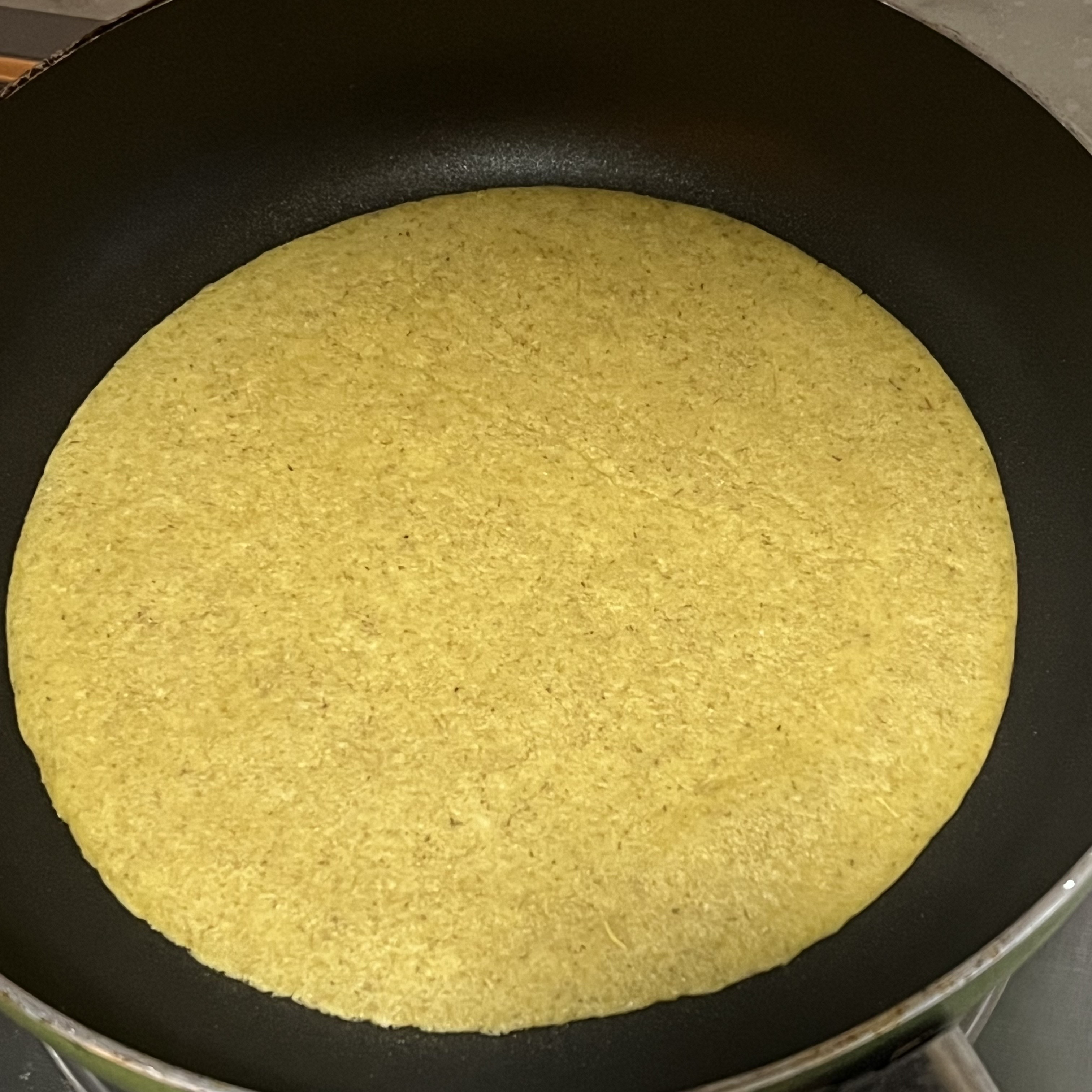 3. 약불에서 가장자리가 익고 떠오르면 뒤집고, 뒤집은 후에는 뒤집개로 눌러주면서 천천히 익혀주세요.