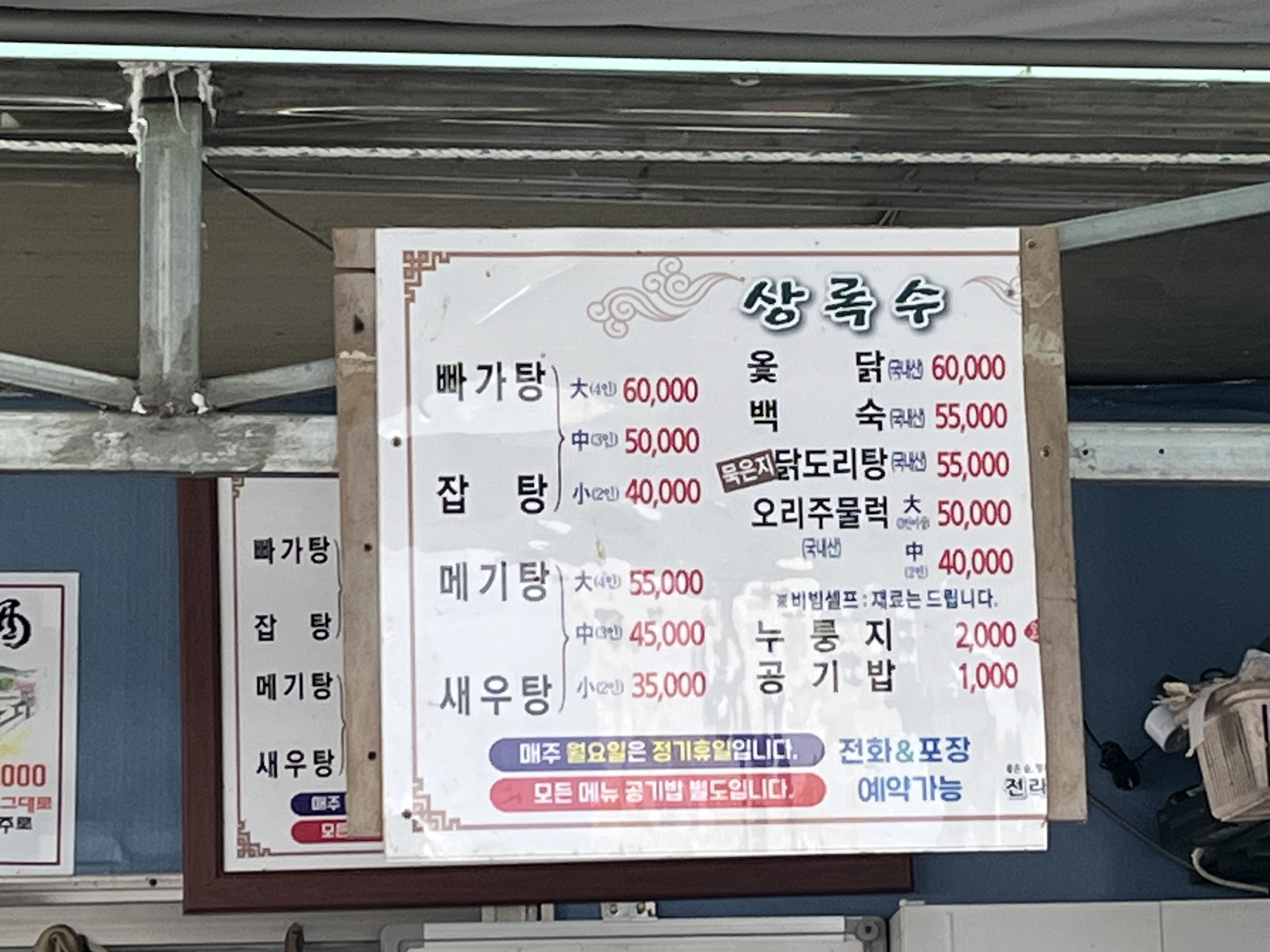 여기 대표 메뉴는 빠가탕, 잡탕, 메기탕, 새우탕, 백숙, 닭도리탕, 오리주물럭 등 다양하게 구성되어 있었어요.