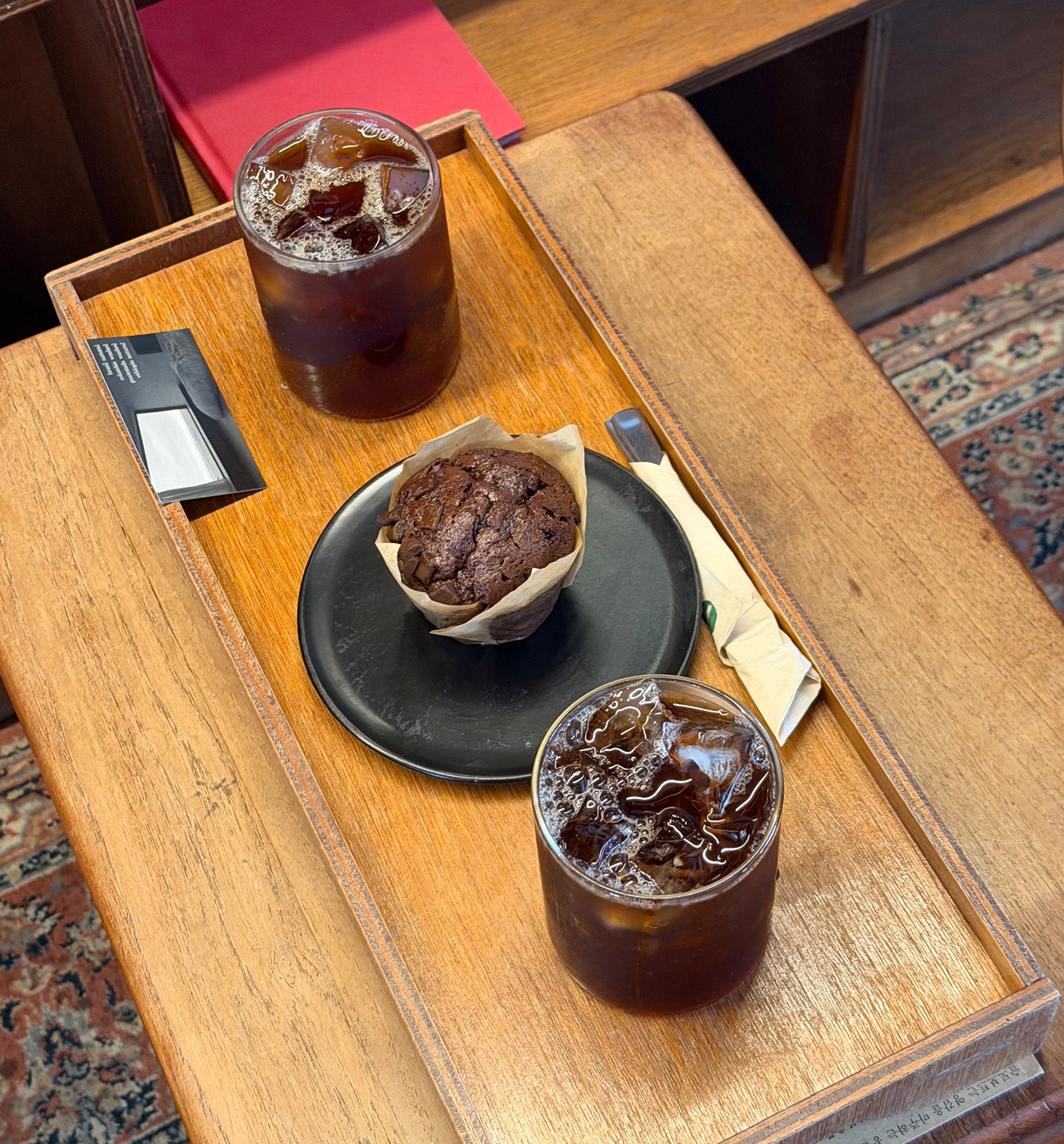 쇼케이스에 있는 디저트도 맛있어 보여 초코 머핀으로 골랐습니다.