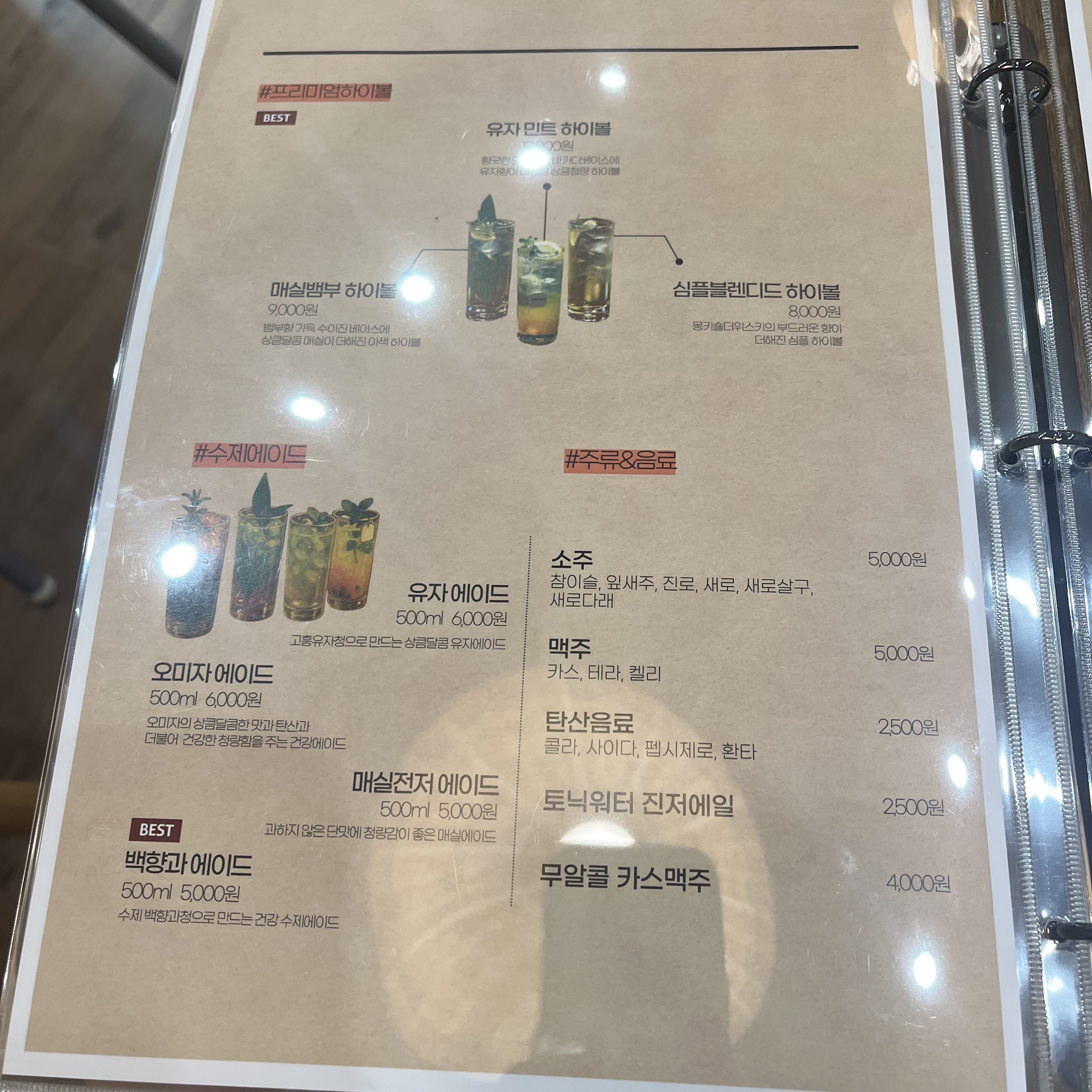 음료와 다양한 종류의 주류도 준비되어있으니 기호에 맞게 주문하시면 좋을 것 같아요.