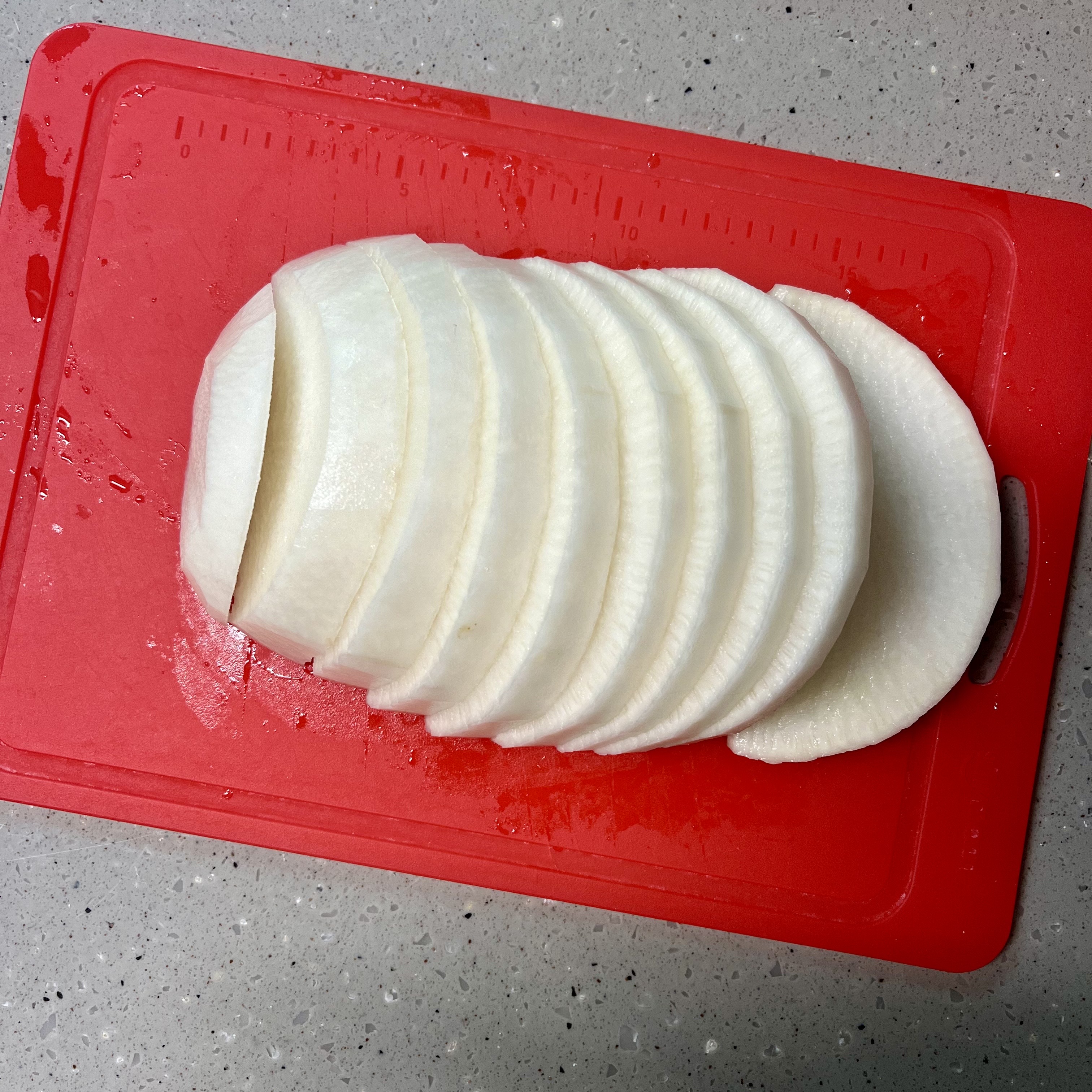 먼저 무는 1cm 정도 간격으로 썰어줍니다