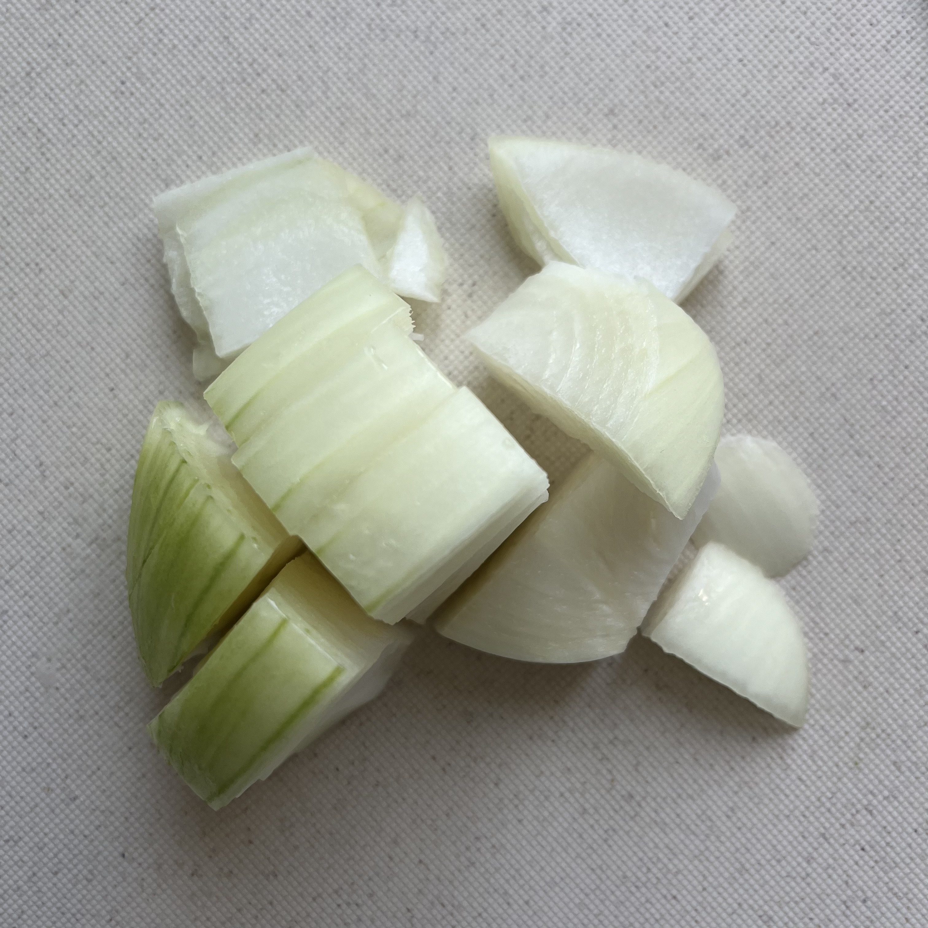 2. 육수가 끓을 동안 알배추, 양파, 청양고추를 썰어줍니다.