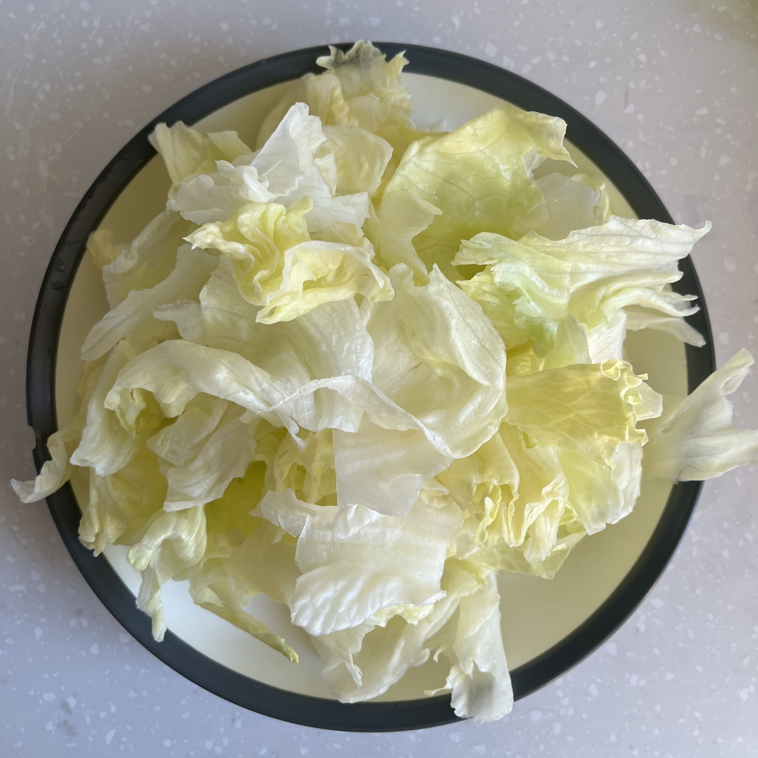 4. 양상추를 씻어 적당한 크기로 잘라주세요. 파프리카나 다른 야채들 이용해도 좋아요.