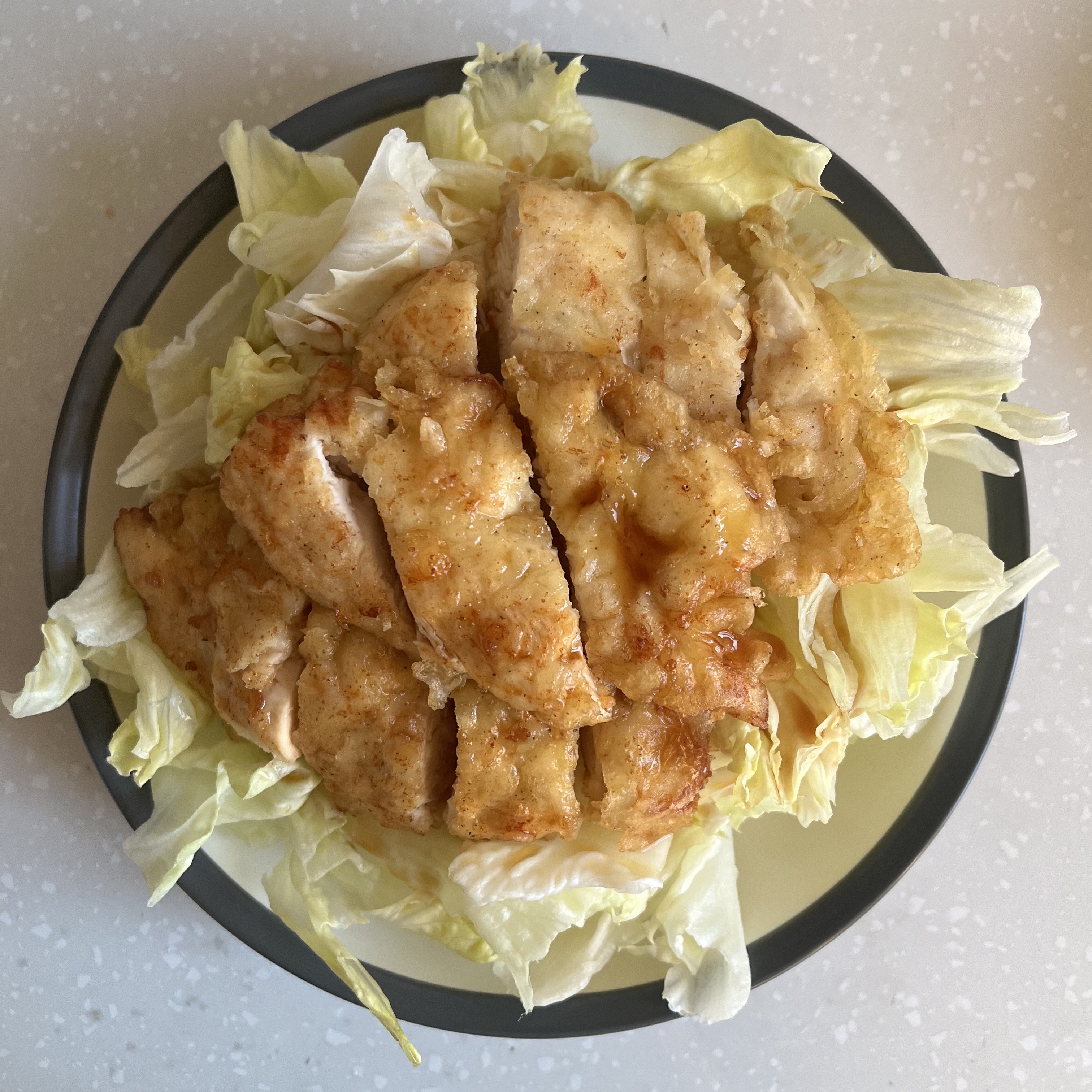 닭안심(닭가슴살), 튀김가루 2T, 올리브유 약간, 소금 약간, 후추 약간, 양상추