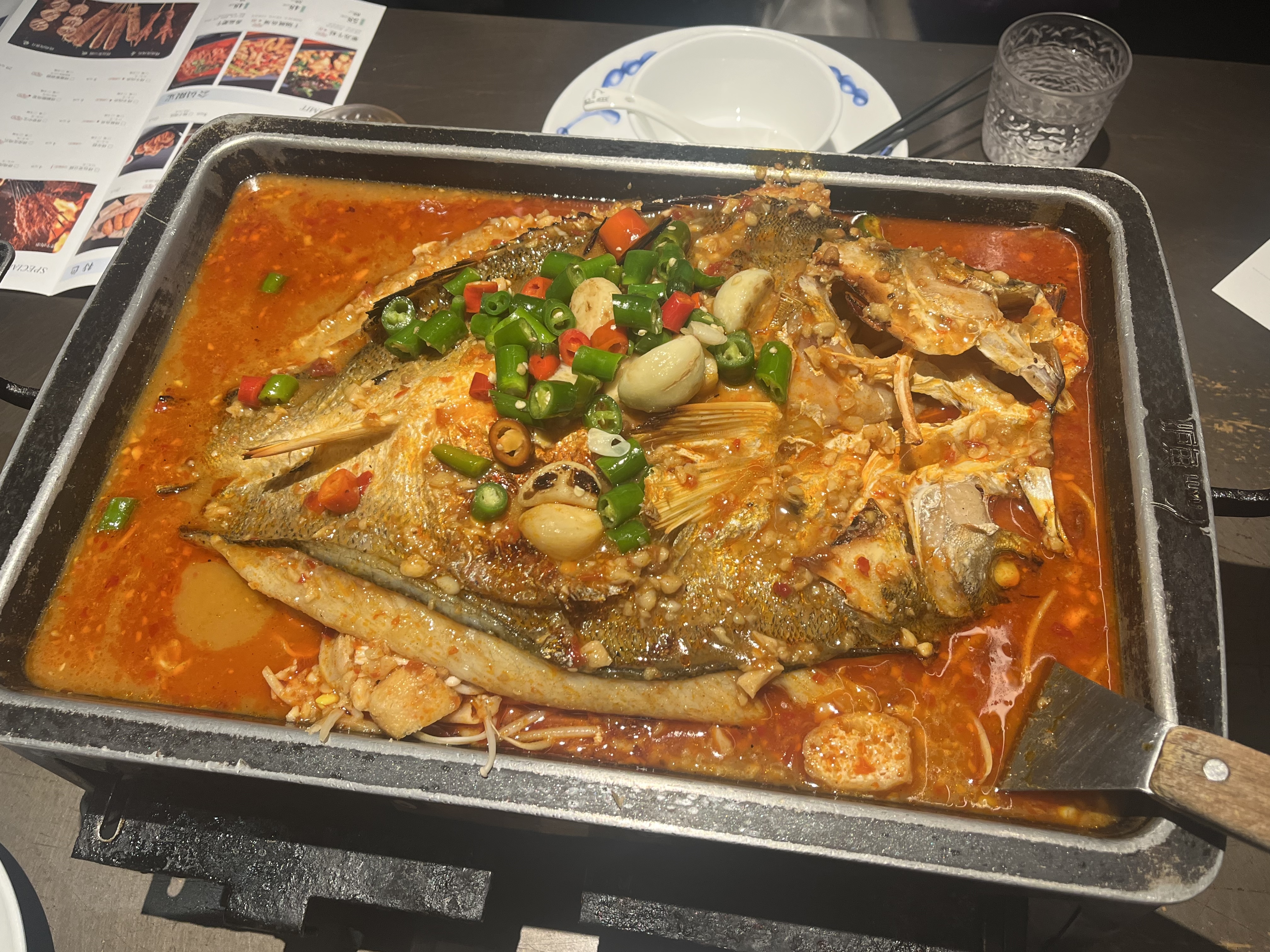 한국분들에게 가장 대중적인 메뉴인 마늘 농어찜을 주문하고, 팽이버섯, 콩나물, 두부, 유부를 추가했어요.