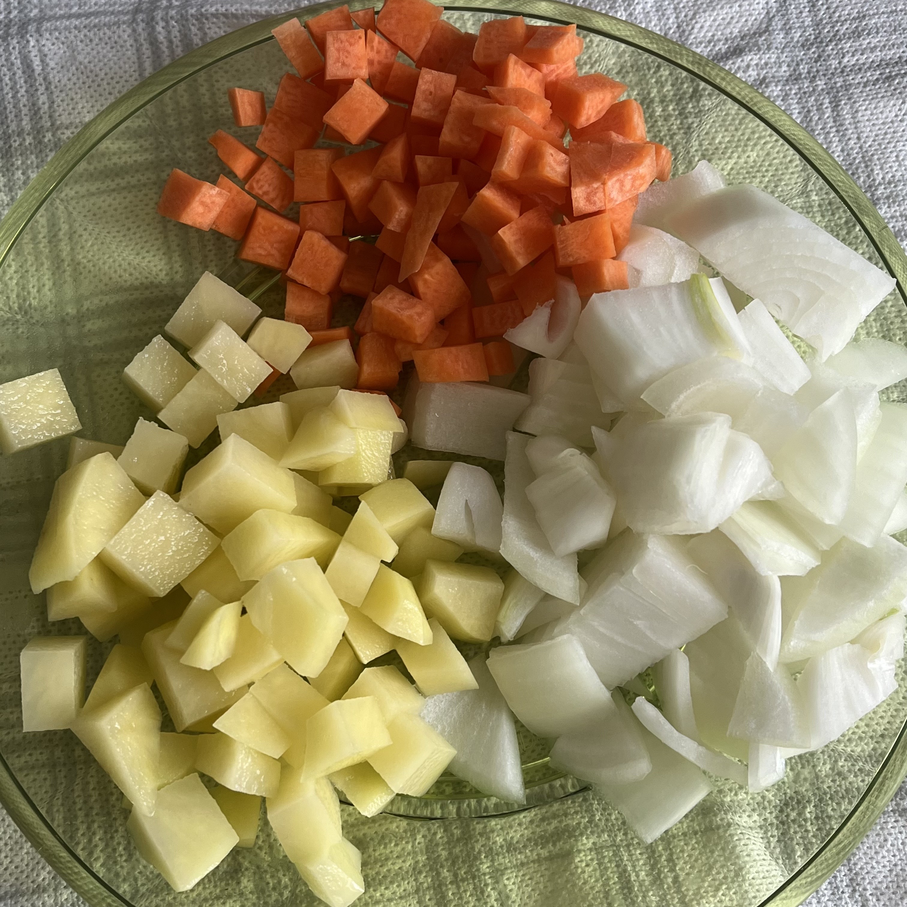 먼저 감자, 양파, 당근을 비슷한 크기로 깍둑썰기 해줍니다