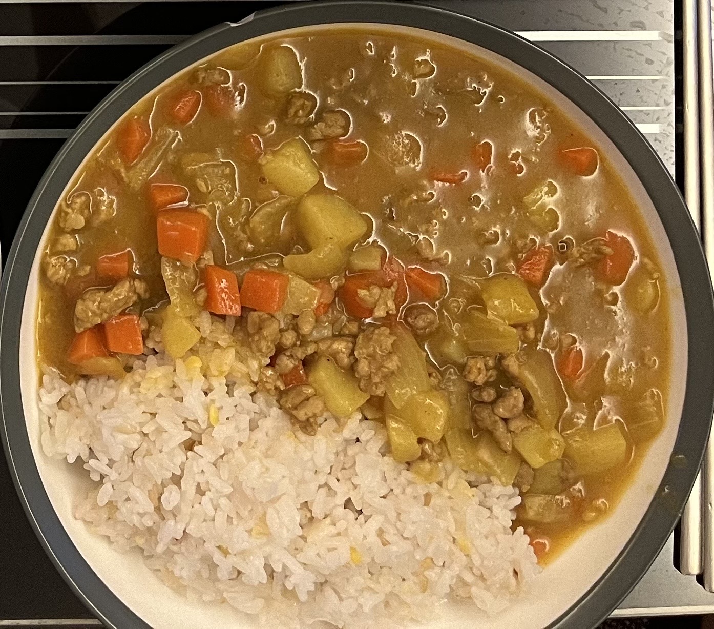 갓지은 밥과 같이 내어주면 이렇게 간단히 카레라이스 완성입니다!
