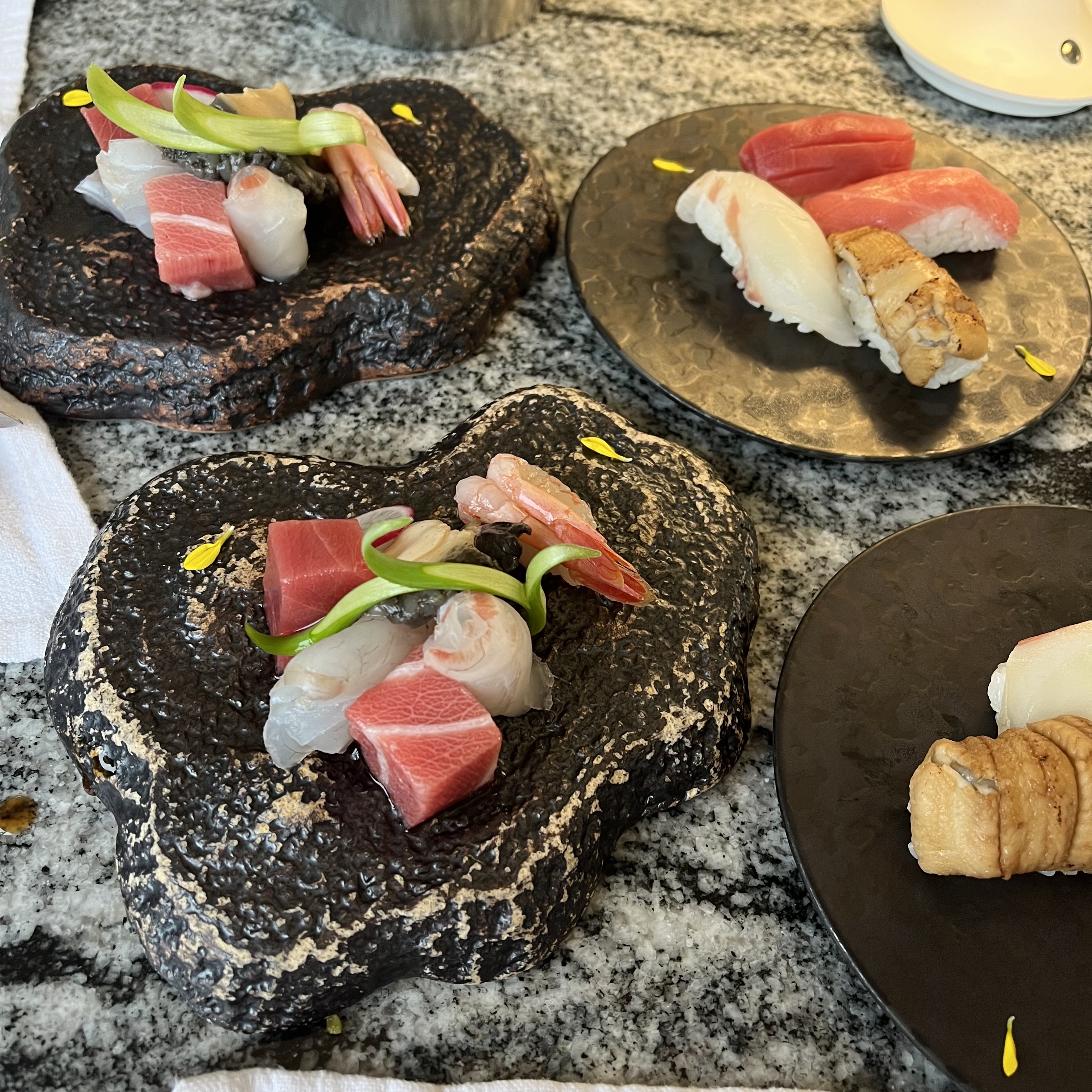 참치, 단새우, 전복 등 사시미류와 캐비어, 우니, 굴, 타르타르, 그리고 전복죽, 대게장빠에야 같은 밥 종류, 스끼야끼, 라자냐 등 별미, 해산물/스테이크 플레이트 등 종류가 다양했습니다